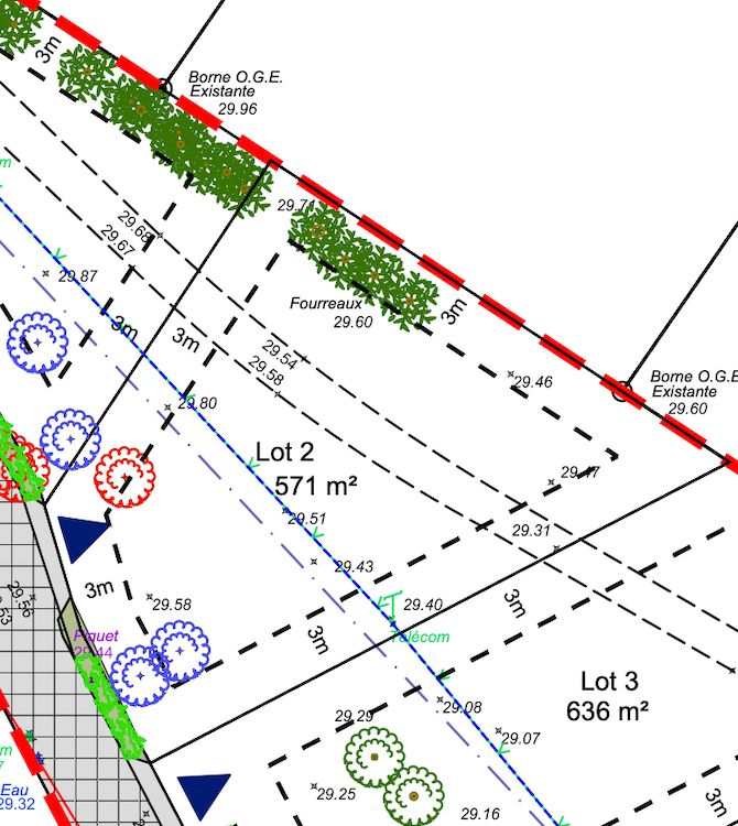 Situé dans un petit lotissement de 6 lots arboré et intimiste, ce dernier fait une surface de 571 m² avec une emprise au sol de 172 m². Il est vendu entièrement viabilisé et libre de constructeur.