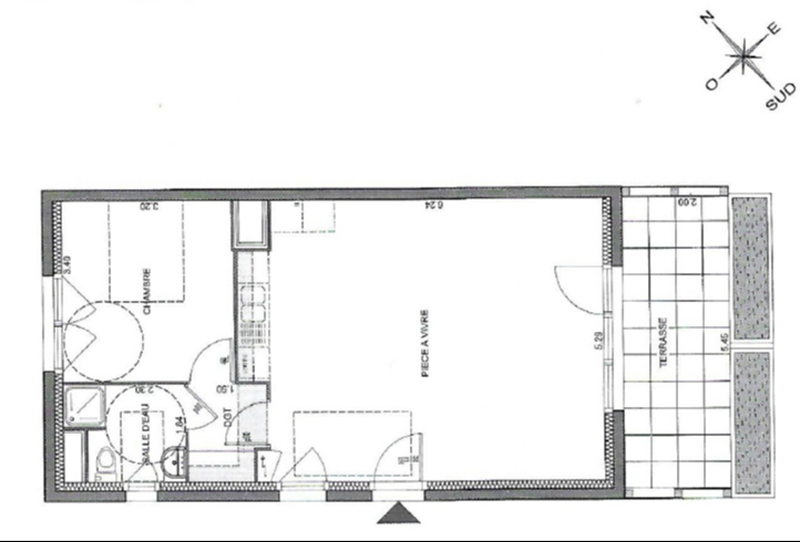 L'espace intérieur se compose d'une entrée ouverte sur une vaste pièce de vie de plus de 34,50 m², comprenant salon séjour avec cuisine ménagée et équipée. Une grande baie vitrée donne accès à la terrasse de 11 m², orientée plein sud, offrant ainsi un espace extérieur agréable et lumineux. L'appartement dispose également d'une grande chambre, d'une salle de douche avec WC et fenêtre, ainsi que d'un dégagement avec placard intégré.