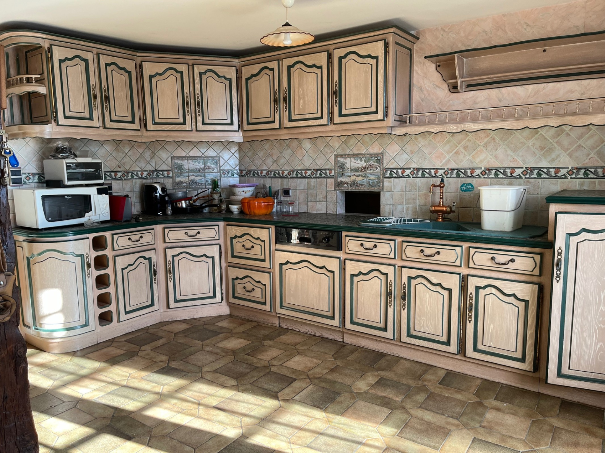 La maison principale est actuellement une grange rénovée en 1998, sur 3 trois niveaux elle est spacieuse avec 176 m2 surface habitable. Elle comprend au rez-de-chaussée une grande pièce principale cheminée - cuisine ouvert avec les poutres-apparentes et les portes-fenêtres ouvrant sur la terrasse ; une arrière-cuisine, buanderie-douche, chambre + wc ; à l'étage un salon, véranda-balcon, 3 chambres, salle de bains wc ; au 2éme étage un grenier de 40m2.