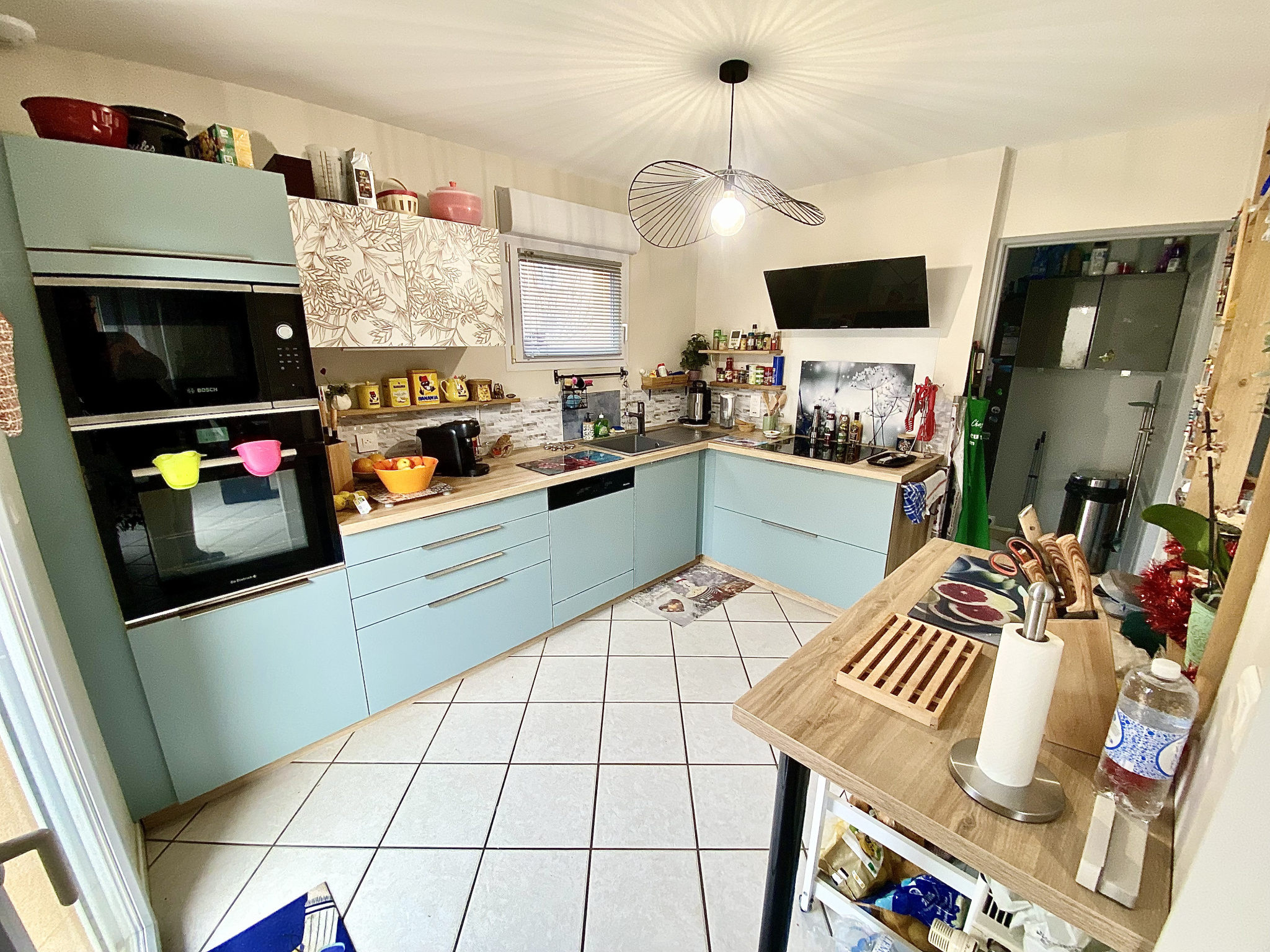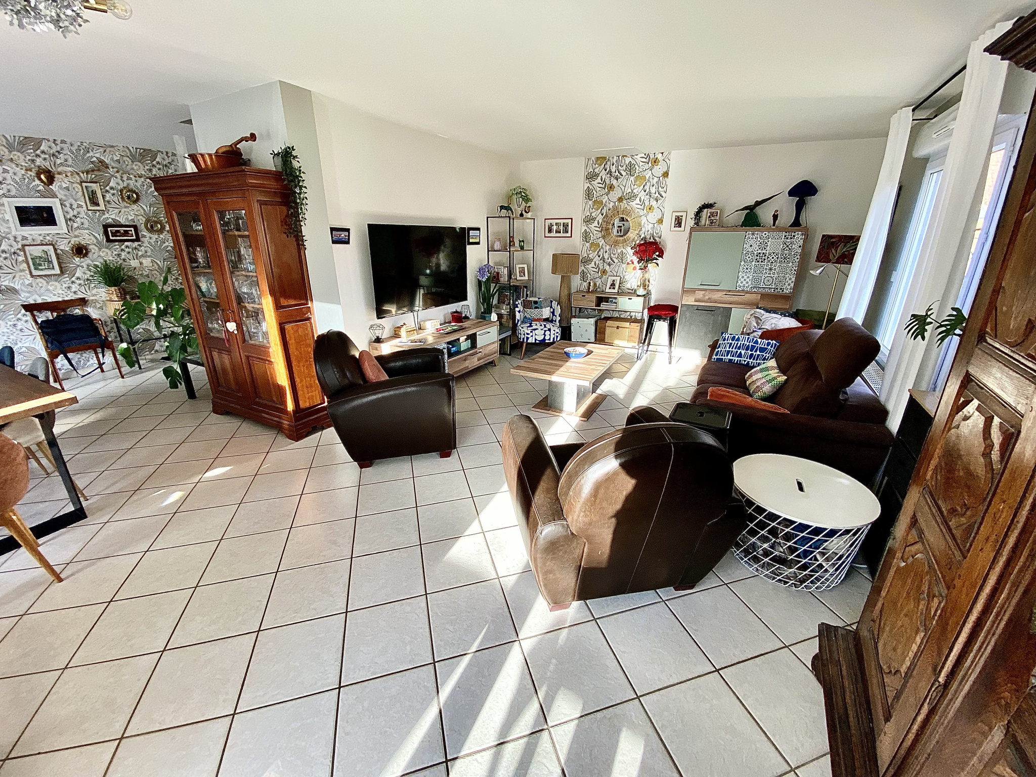 Nous vous proposons cette maison, construite en 1998 comprenant au rez-de-chaussée une entrée avec placards, un vaste salon-séjour de 43 m2 donnant accès direct sur une grande terrasse (exposé plein SUD et piscine), une cuisine (SCHMIDT) aménagée et équipée, semi-ouverte sur le séjour avec un cellier / buanderie attenant (très pratique !) , WC séparés et garage (porte automatisée) avec vestibule / rangements.
