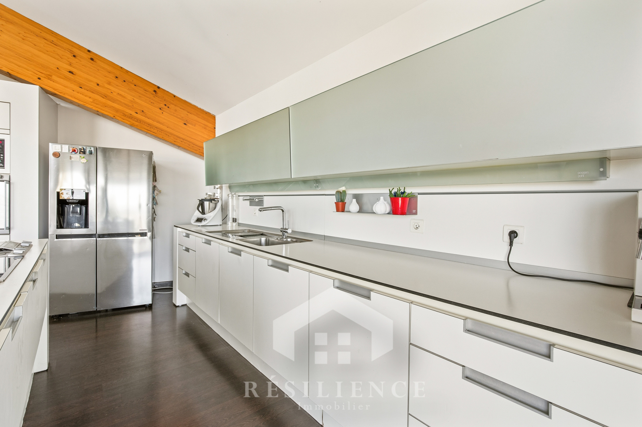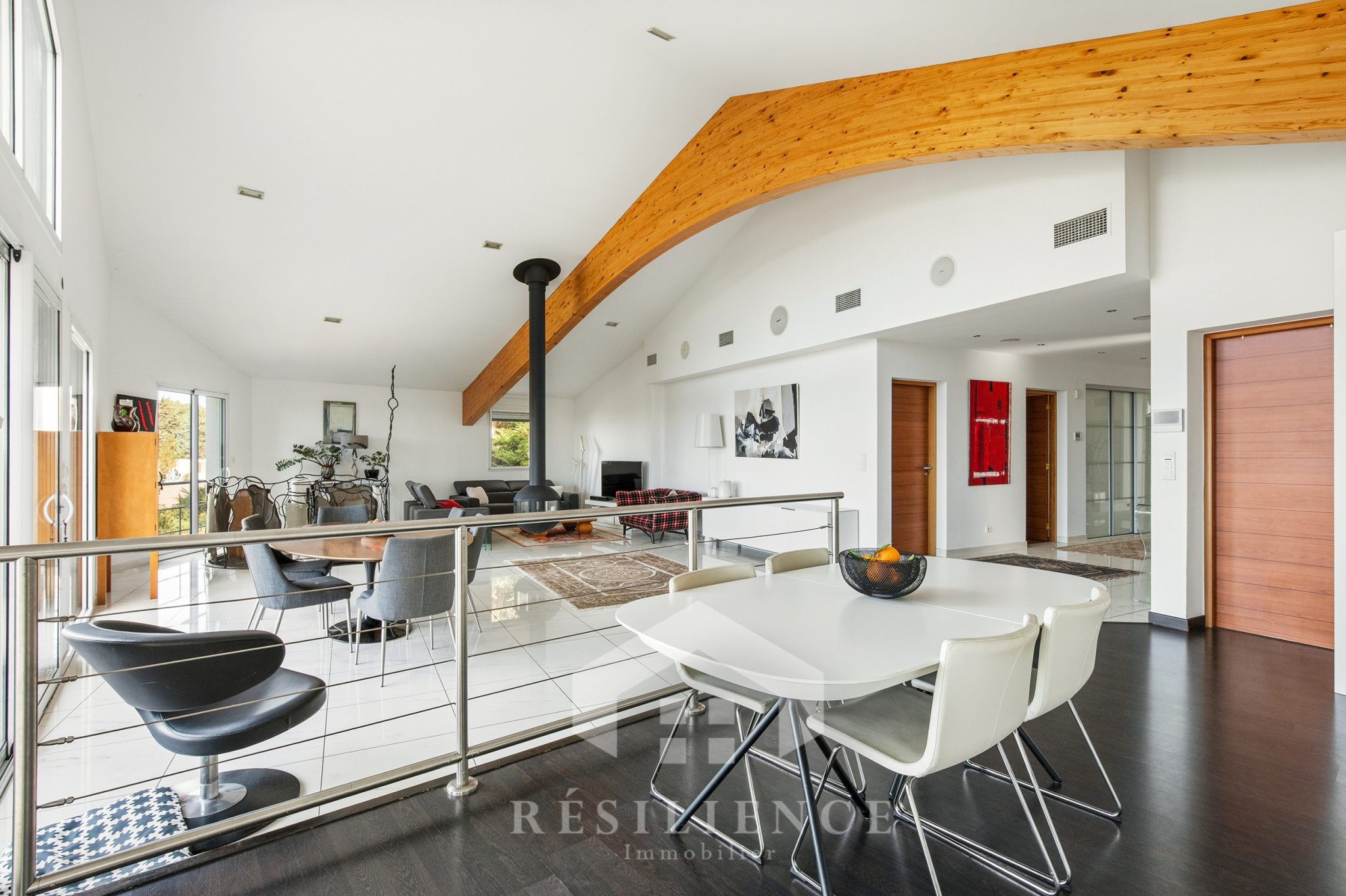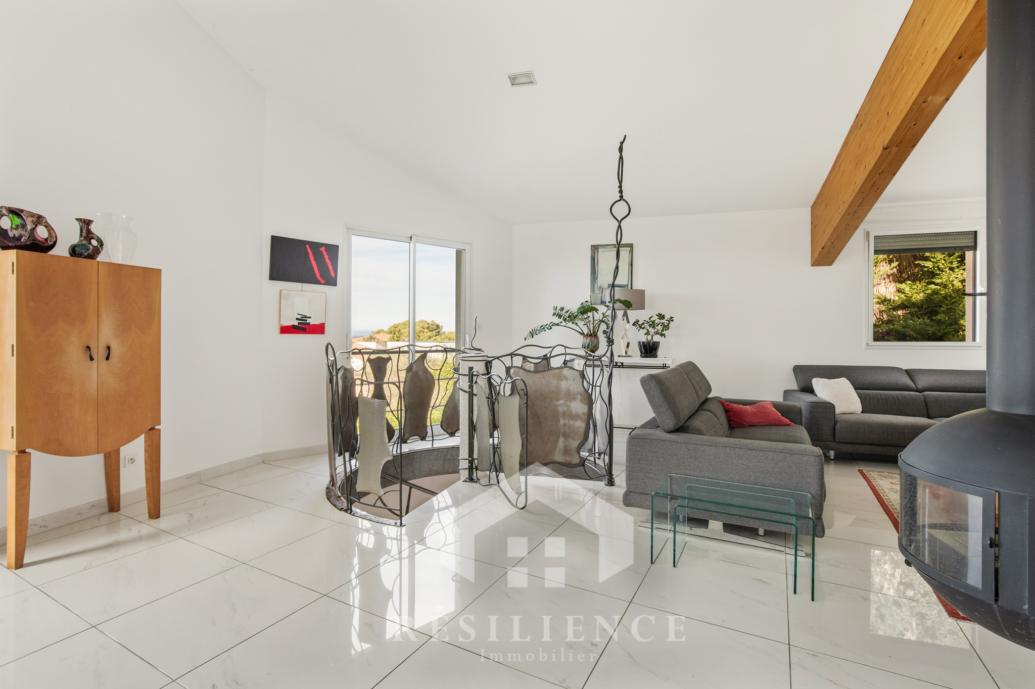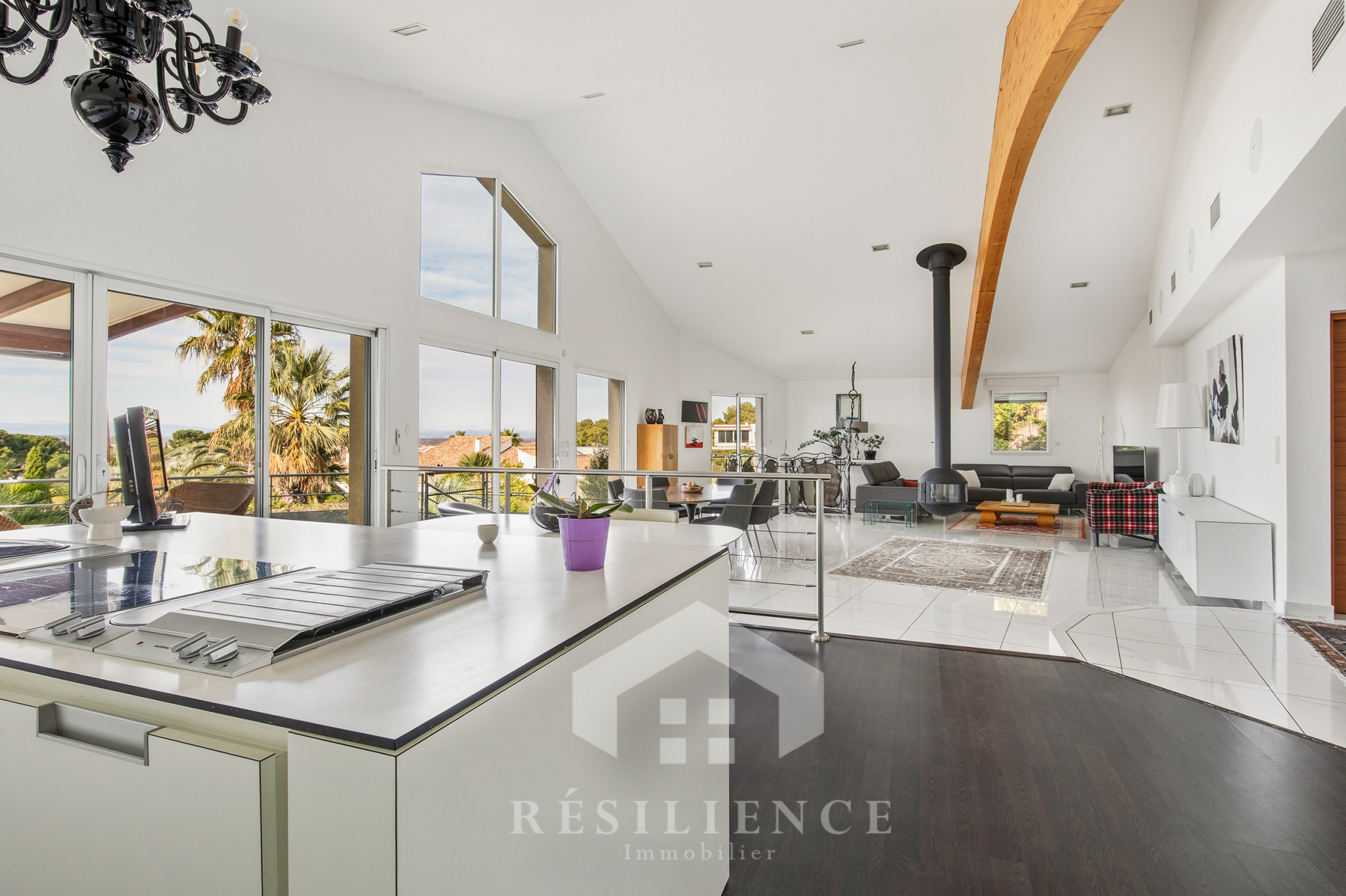 Dans un environnement confidentiel et préservé, en lisière d'une vaste zone naturelle arborée et à seulement dix minutes des plages, Résilience Immobilier a le privilège de présenter cette maison d'architecte d'exception, véritable oeuvre contemporaine dominant la ville d'Agde, la Méditerranée et, à l'horizon, la chaîne des Pyrénées. Implantée sur une parcelle de 1 300 m2 de jardin paysagé et arboré aux essences méditerranéennes : oliviers, oranger, palmiers, entièrement close de murs, avec piscine 10x5m, la maison de 312 m2 habitables se distingue par la qualité de son architecture, la générosité de ses volumes et la cohérence de ses espaces de vie. Dès l'entrée, la maison impose sa signature : une entrée cathédrale de 6,5 mètres de hauteur sous plafond, un double escalier monumental, et un lustre suspendu pensé comme une oeuvre d'art, composent une scénographie intérieure saisissante, baignée de lumière. Le séjour de réception de 80 m2, aux volumes cathédrale avec ses 5,5m d'hauteur sous plafond, est sublimé par un poêle suspendu, créant une atmosphère à la fois élégante, chaleureuse et d'une lumière omniprésente. La cuisine ouverte de 25 m2, aux lignes contemporaines, se prolonge naturellement vers une terrasse de 27 m2, offrant une vue imprenable sur la ville, la mer et les coucher de soleils. Un véritable tableau vivant. Outre les espaces de vies, le rez-de-chaussée accueille également 3 chambres pensées comme des suites privées : * Une suite complète avec salle de bains, douche et WC * Deux chambres, avec une salle d'eau avec WC * WC invités * Buanderie / arrière-cuisine de 11 m2 À l'étage, la Master bedroom de 32 m2 offre un espace intime et exclusif, avec dressing sur mesure et salle d'eau avec WC, très lumineuse. Le rez-de-jardin, avec accès direct sur les extérieurs et piscine se compose : * D'un salon d'été, idéal pour les réceptions * 5ème chambre avec salle de bains et WC * Piscine 10 x 5 m, parfaitement intégrée au jardin paysager Quelques dépendances: * Garage de 40 m2 * Garage à vélos de 16 m2 * Local technique piscine Prestations haut de gamme, volumes maîtrisés, circulation fluide, prestations de qualité et panorama unique font de cette villa un bien singulier, destiné à des acquéreurs en recherche de calme, d'espace et de caractère, entre nature, architecture et horizon marin. Un bien rare sur le marché Agathois, réservé aux amateurs de lieux d'exception. Intéressés? Contactez-nous.