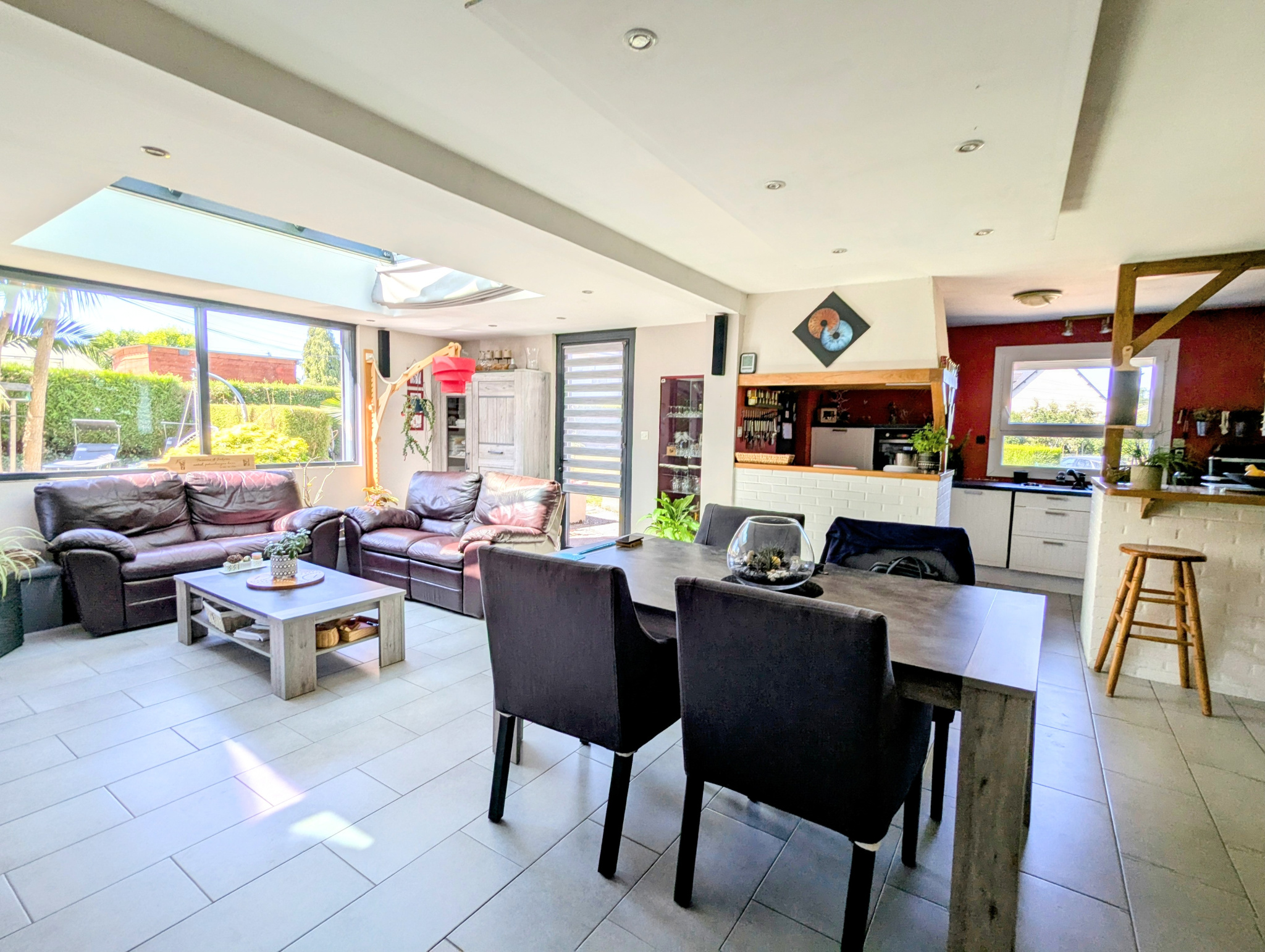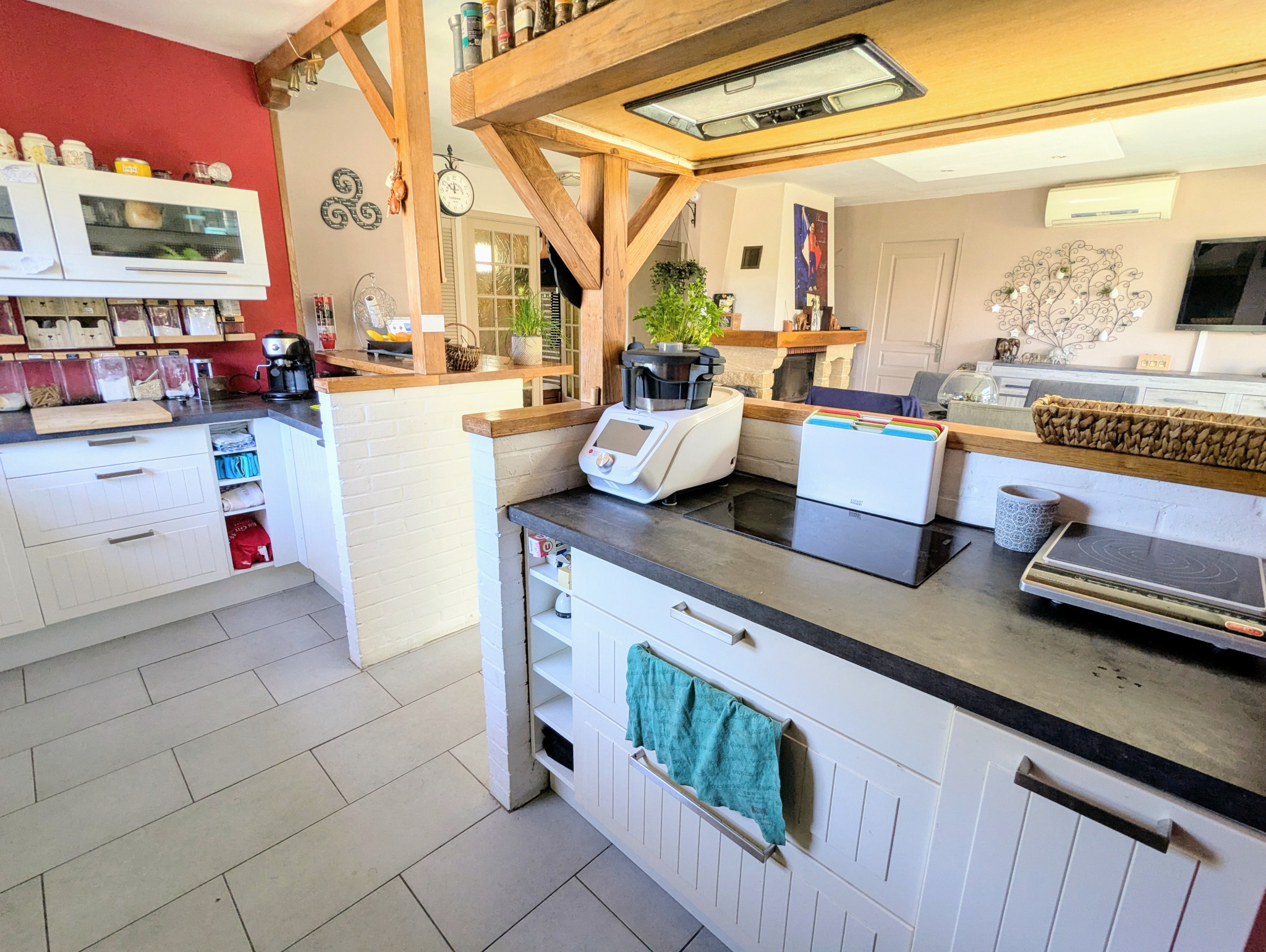 Conçue pour faciliter votre quotidien, cette maison propose une configuration idéale avec une vie de plain-pied : Espace de Vie : Un vaste salon-séjour baigné de lumière naturelle, agrémenté d'une cheminée pour vos soirées d'hiver. Cet espace convivial s'ouvre sur une cuisine moderne, ouverte et entièrement équipée. Rez-de-chaussée : Une entrée avec placards, deux belles chambres, une salle de bains et un WC indépendant. Étage : Une mezzanine accueillante dessert deux chambres supplémentaires et un cabinet de toilette, offrant un espace nuit indépendant et confortable.
