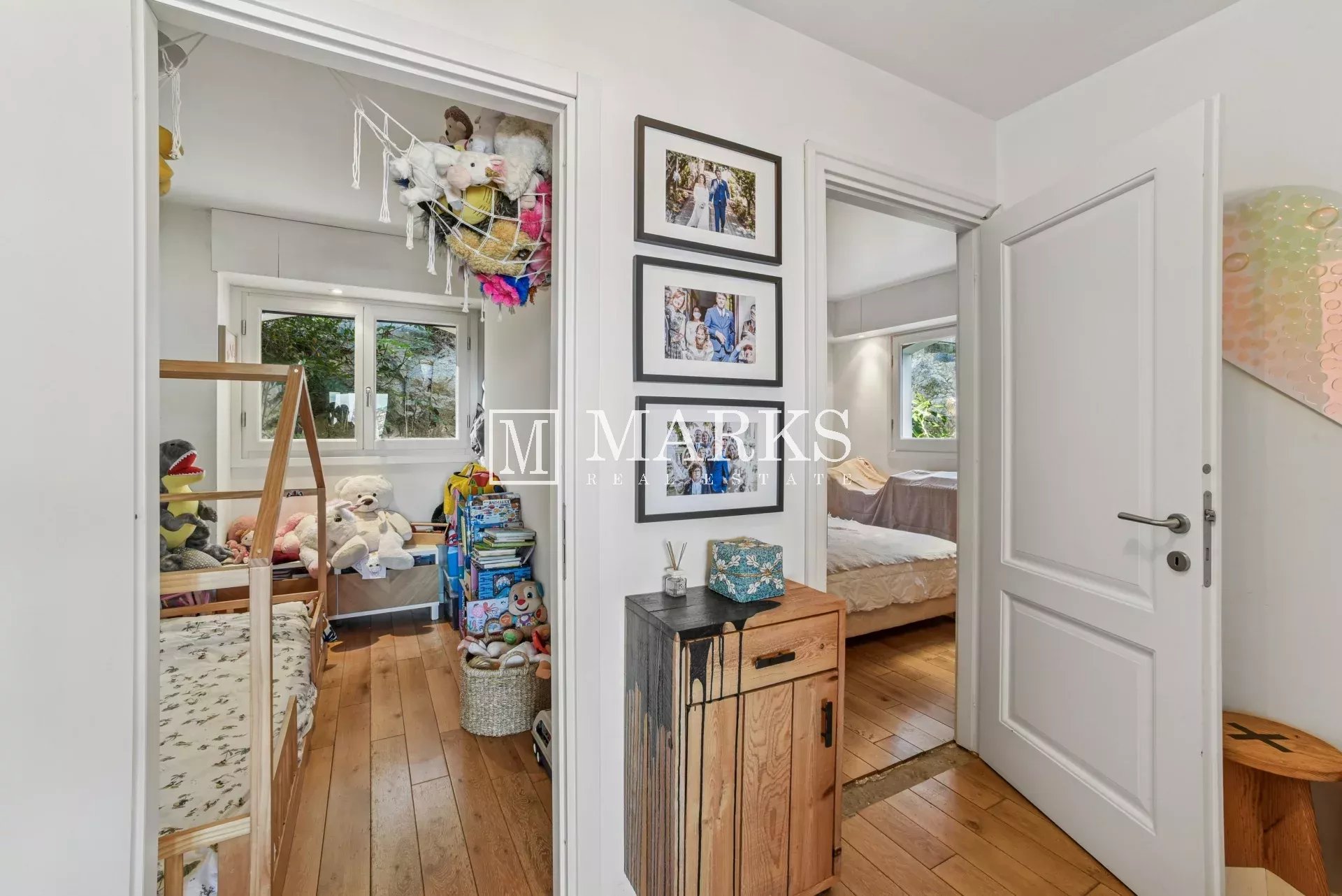 Situé dans une copropriété bien positionnée dans le centre de Saint-Jean-Cap-Ferrat, cette opportunité comprend deux appartements (studio + 2 chambres) situés l'un au-dessus de l'autre dans le bâtiment B - au rez-de-chaussée et au premier étage. Ils peuvent être achetés ensemble et, sous réserve des autorisations de la copropriété et de la faisabilité technique, peuvent potentiellement être reliés pour former un appartement en duplex. La situation est particulièrement attrayante, offrant l'une des plus belles vues d'un immeuble de Saint-Jean sur le village et la mer, tout en restant dans un environnement particulièrement calme, sans perturbation directe de la circulation routière.