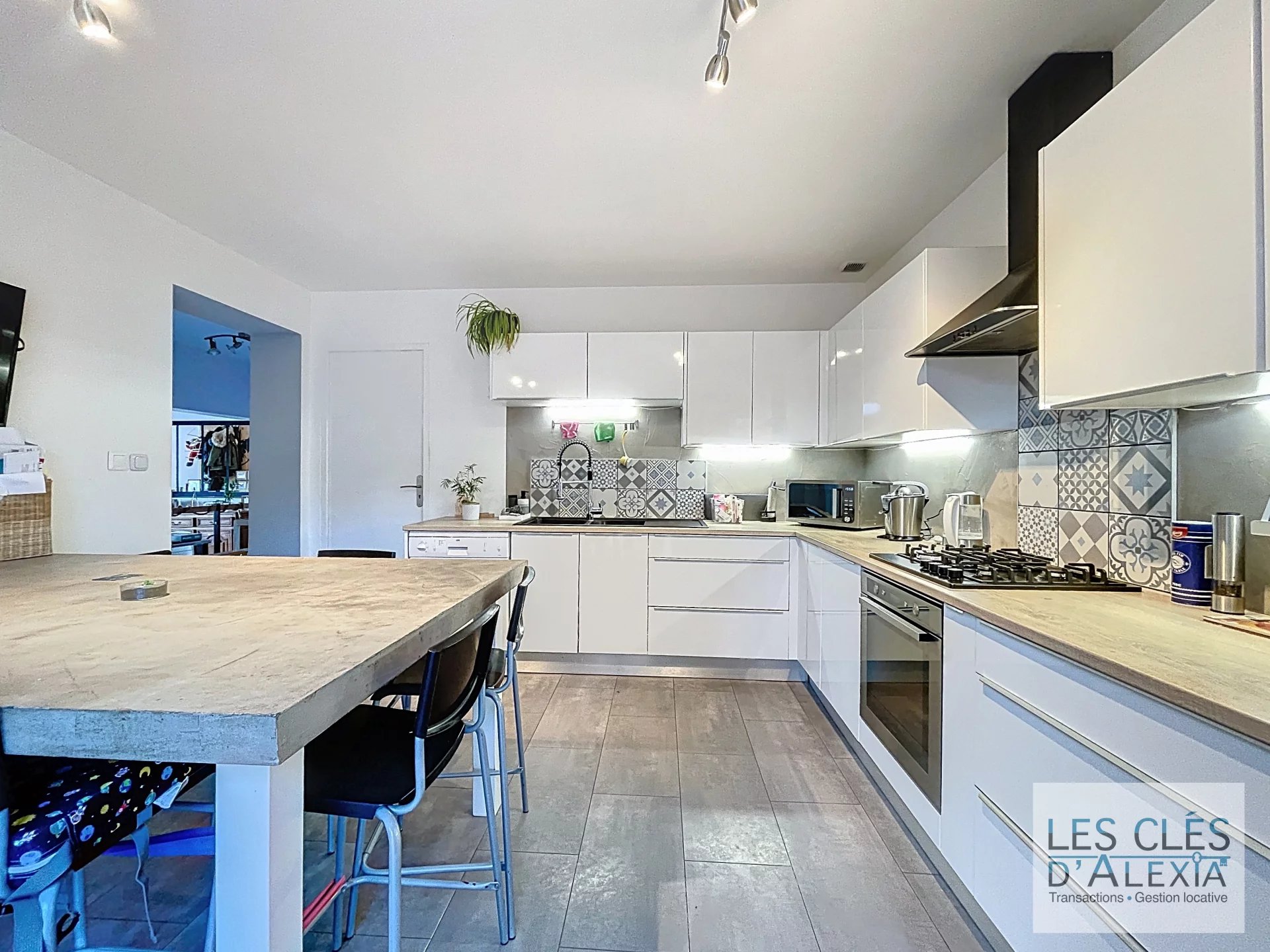 À l’étage, un second appartement se compose d’une entrée, d’une cuisine, d’une salle à manger donnant sur un balcon équipé d’une pergola bioclimatique, d’un salon confortable, d’une salle d’eau, d’une buanderie et de trois chambres.