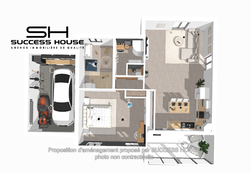 Certaines images présentées par Succès House peuvent être retouchées ou générées virtuellement afin d'illustrer le potentiel d'aménagement du bien. Ces visuels sont purement décoratifs et non contractuels : ils ne reflètent pas nécessairement l'état actuel du bien, ni la faisabilité technique ou administrative des transformations représentées (mobilier, finitions, couleurs, volumes, ouvertures, redistribution des espaces, suppression/ajout de cloisons, etc.). L'état réel du bien, sa configuration, son usage et ses caractéristiques doivent être appréciés uniquement lors de la visite physique, ainsi qu'au travers des documents et diagnostics remis par Succès House. Succès House s'engage à une présentation loyale et transparente ; ces visuels ont pour seule vocation de permettre une meilleure projection du potentiel du bien. Les informations sur les risques auxquels ce bien est exposé sont disponibles sur le site Géorisques : www.georisques.gouv.fr