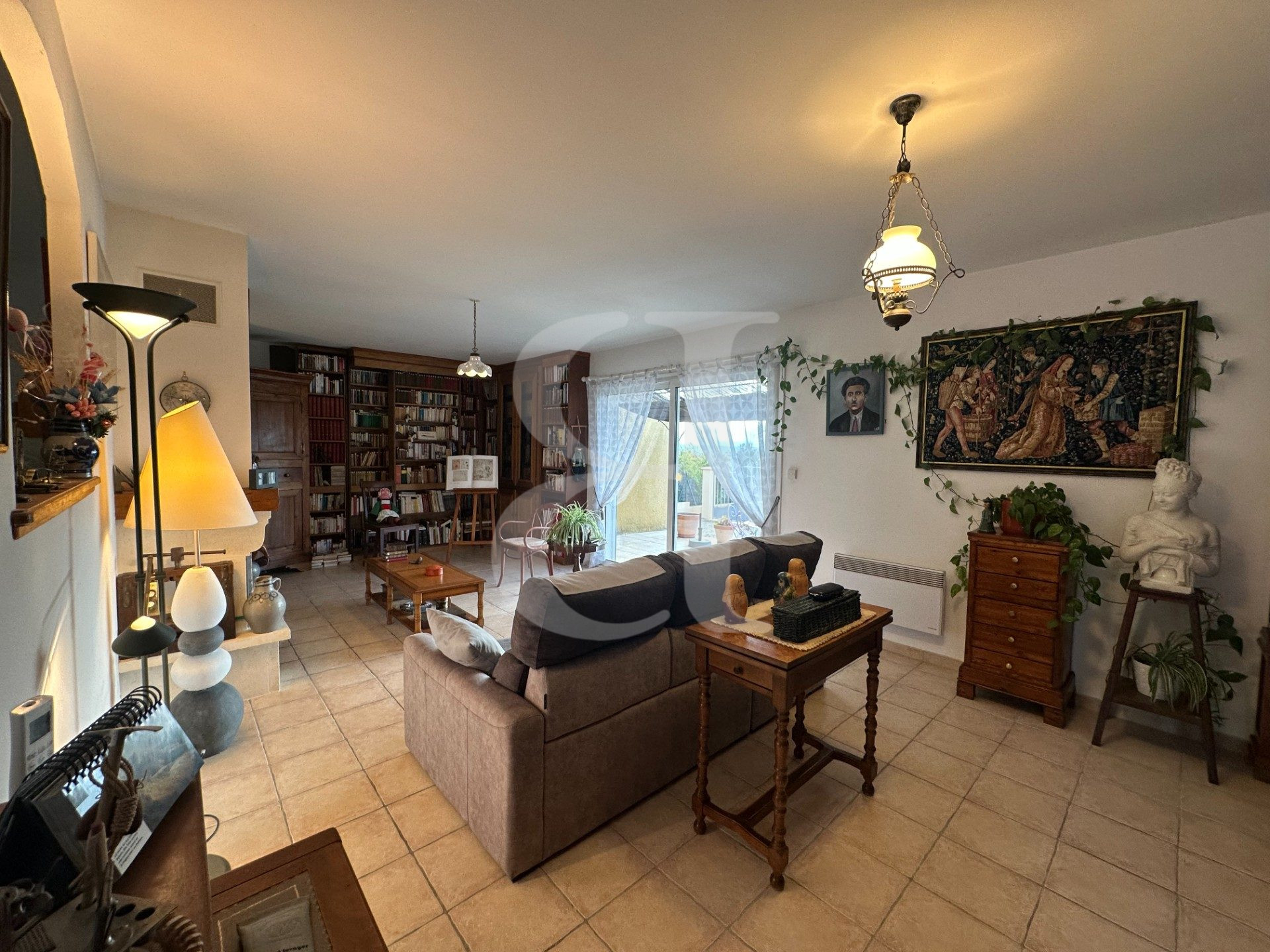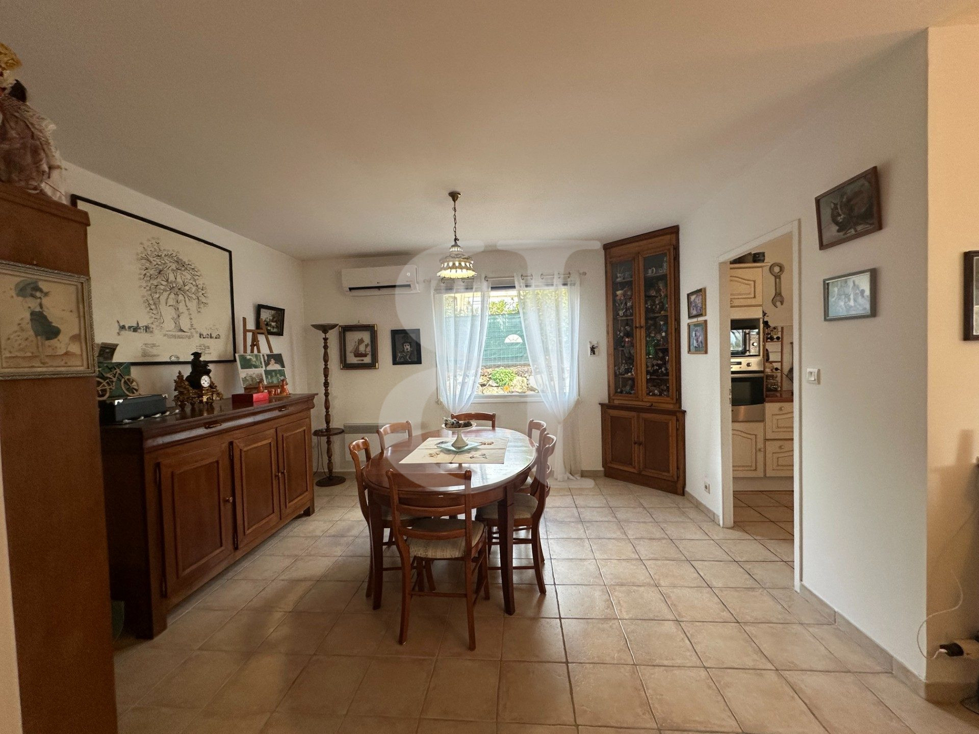 Séjour / salle à manger accès terrasse avec climatisation et cheminée insert 51 m²