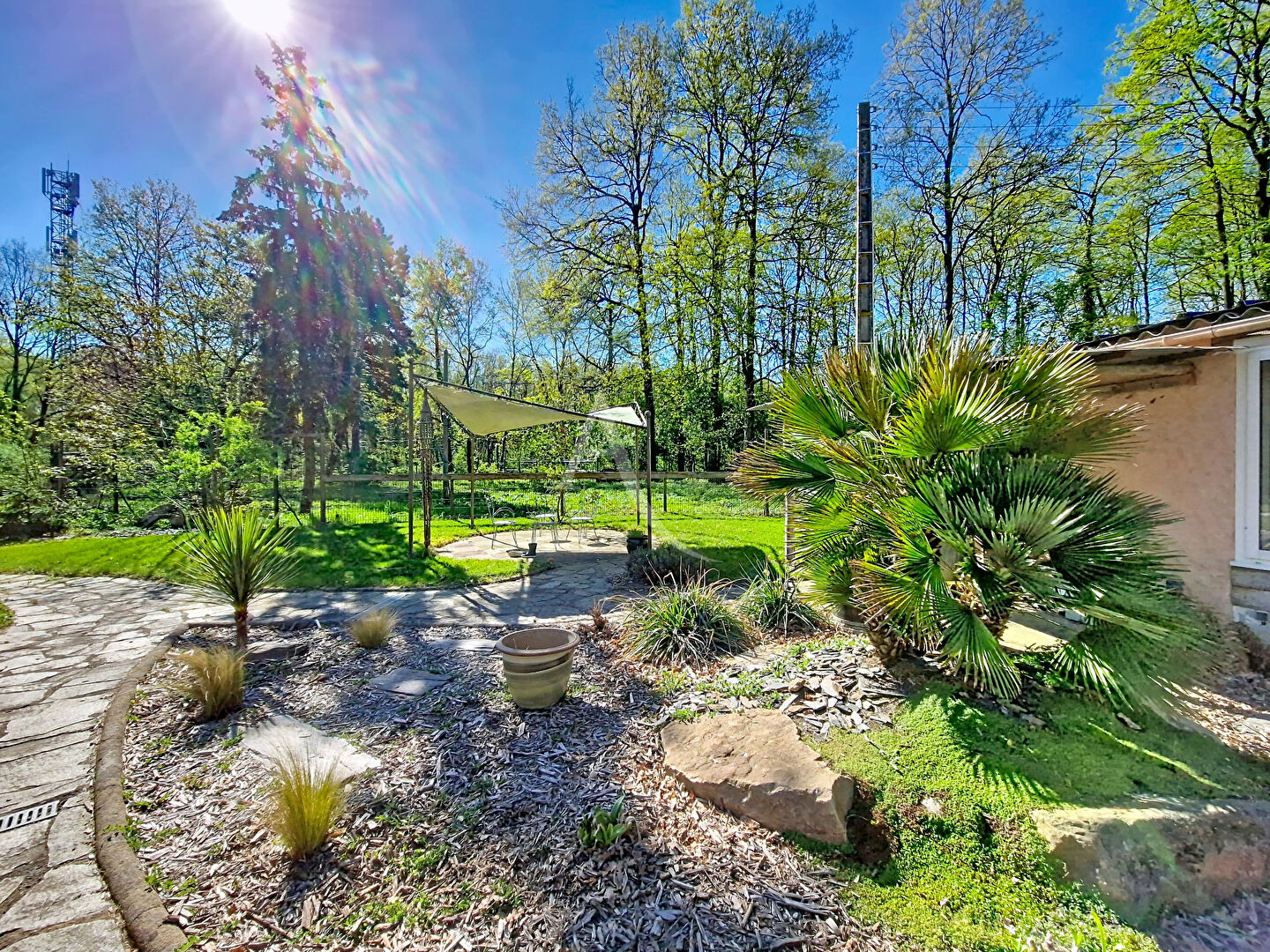 L'ensemble est implanté au coeur d'un environnement boisé de plus de deux hectares composé principalement de chênes, offrant une tranquillité rare et un cadre naturel exceptionnel.