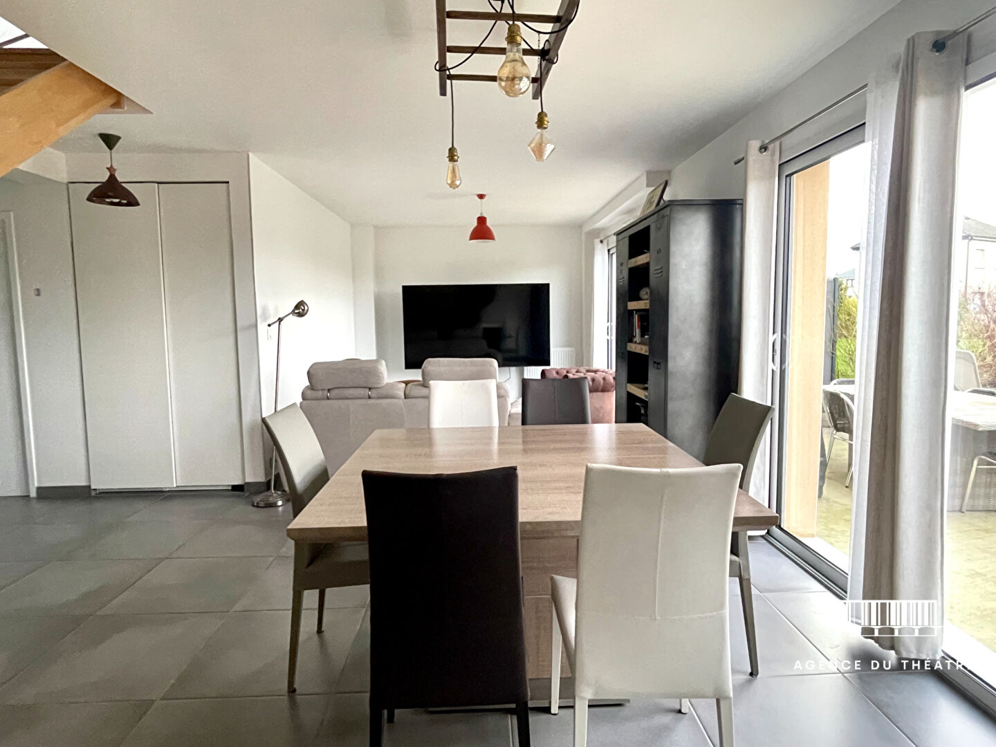 Secteur très recherché au Nord de Caen - Maison de cinq pièces principales de 2020 équipée d'une pompe à chaleur air/eau. Cette maison de 110 m2 avec 3 chambres offre de beaux volumes et de belles prestations comme sa cuisine entièrement aménagée et équipée. Garage avec porte motorisée. Terrain clos de 324 m2 exposé sud-ouest. Possibilité d'aménager les combles.