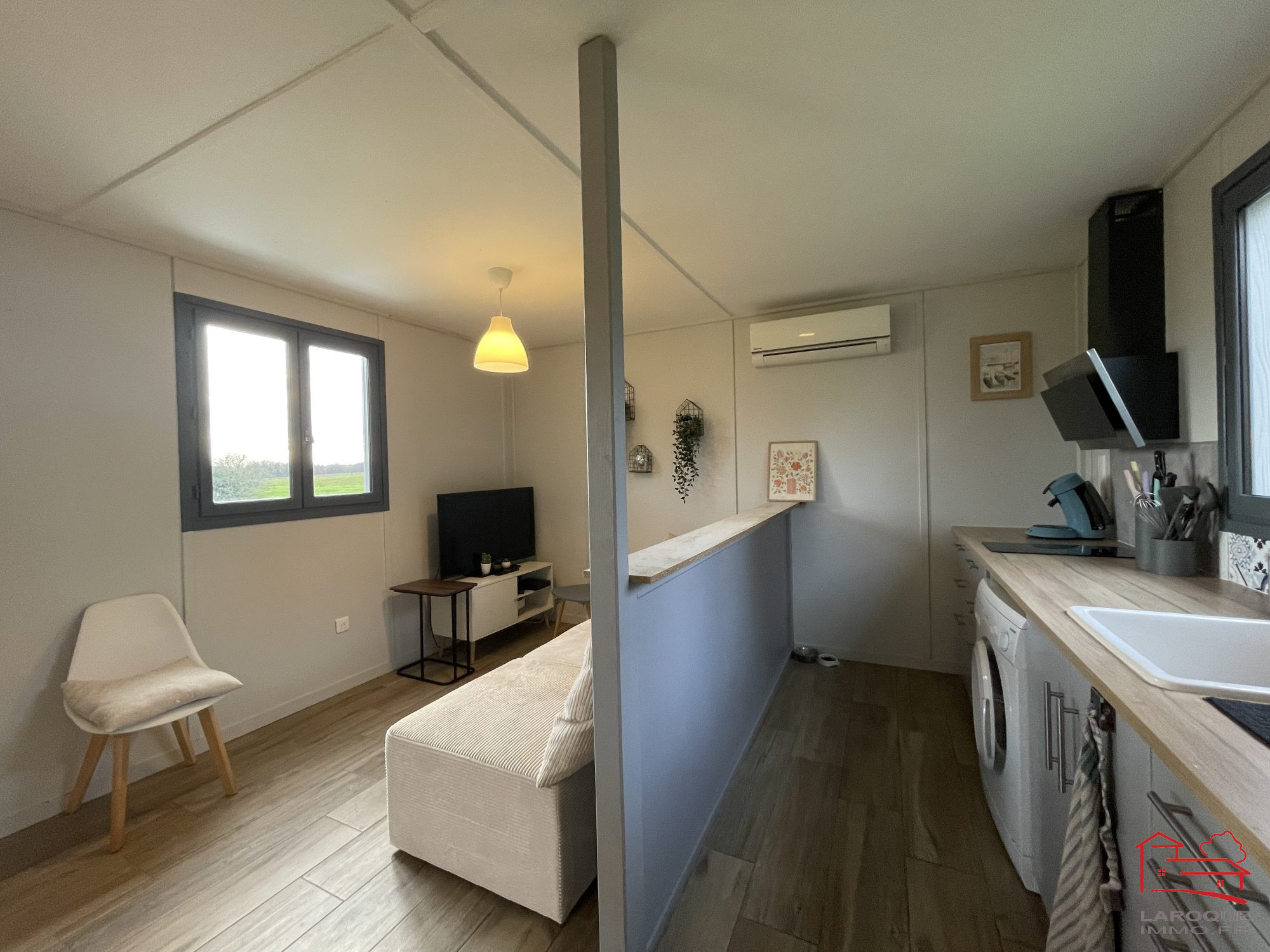 Construite en 1997 et entièrement rénovée en 2019, cette maison de plain-pied, d'une surface habitable de près de 40m², se présente en excellent état intérieur et ne nécessite aucun travaux. Elle se compose d'une agréable pièce de vie lumineuse de 23 m², intégrant une cuisine américaine aménagée, fonctionnelle et conviviale. Une chambre, une salle d'eau moderne ainsi qu'un WC indépendant complètent l'espace intérieur, parfaitement optimisé.
