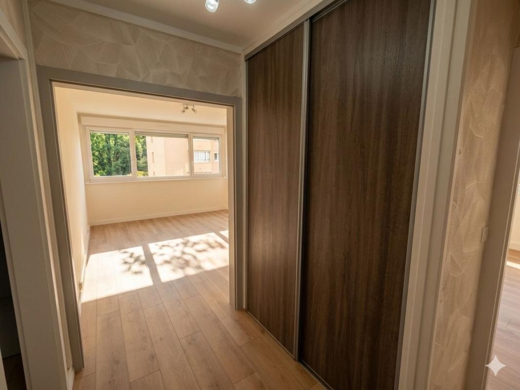 Il offre : Entrée avec placard, 2 chambres, séjour, balcon, cuisine dinatoire, WC, salle d'eau, cave et parking libre dans la résidence.