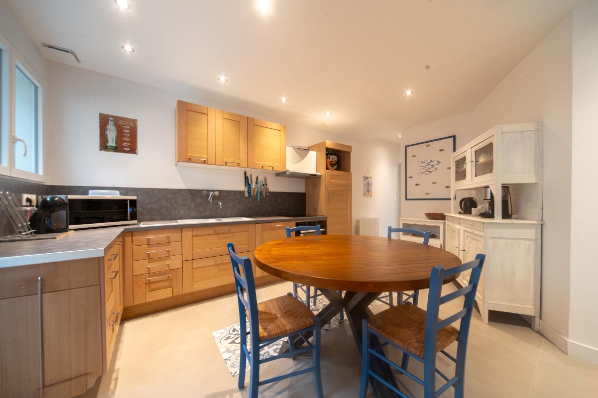 Vous tomberez sous le charme de la terrasse couverte avec sa cuisine d'été, véritable pièce de vie supplémentaire 8 mois de l'année. Le jardin arboré invite à la détente, tandis que l'abri extérieur accueillera aisément vélos et matériel de plage.