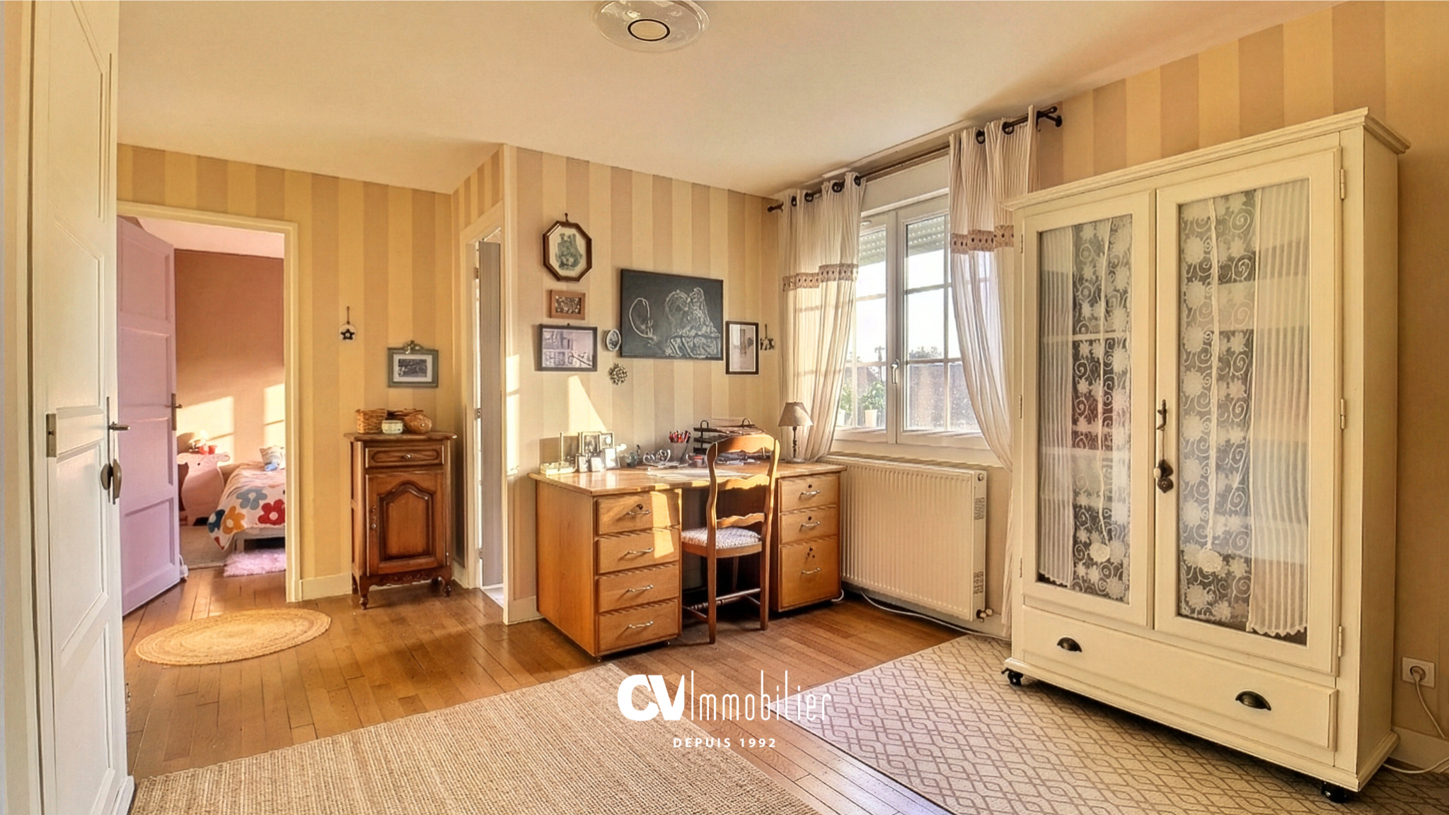 Prestations : la maison bénéficie d'un système de chauffage par pompe à chaleur air/eau (2023) ainsi que de panneaux photovoltaïques, les fenêtres sont en double vitrage PVC, l'assainissement est relié au tout-à-l'égout, le portail est motorisé.