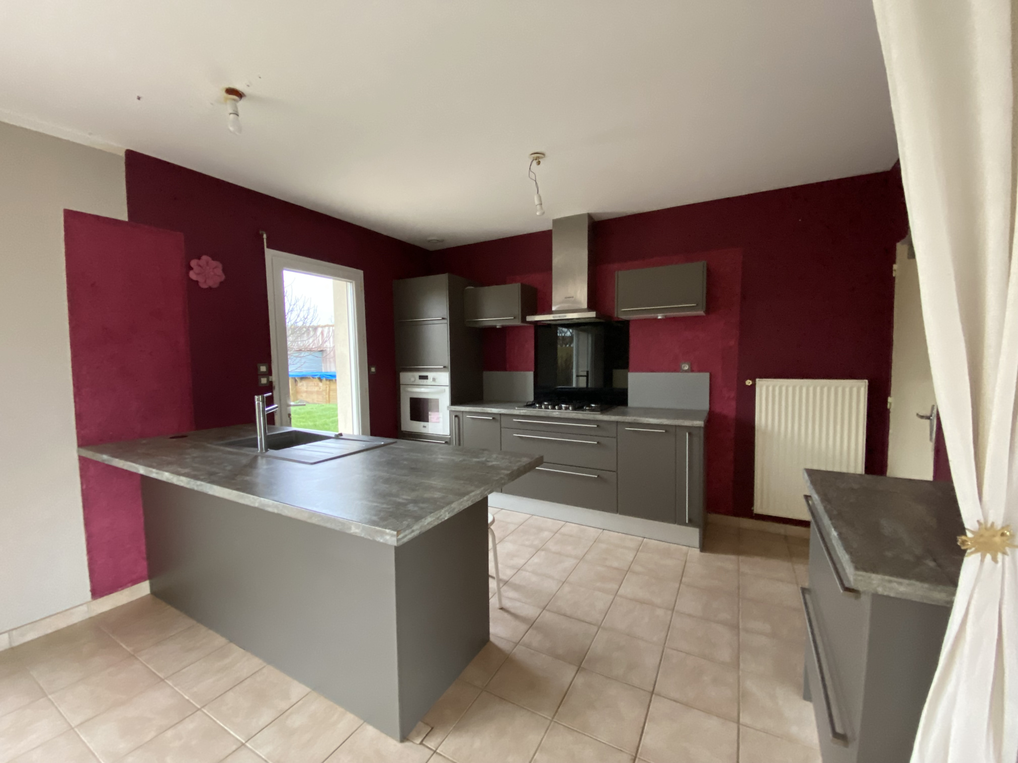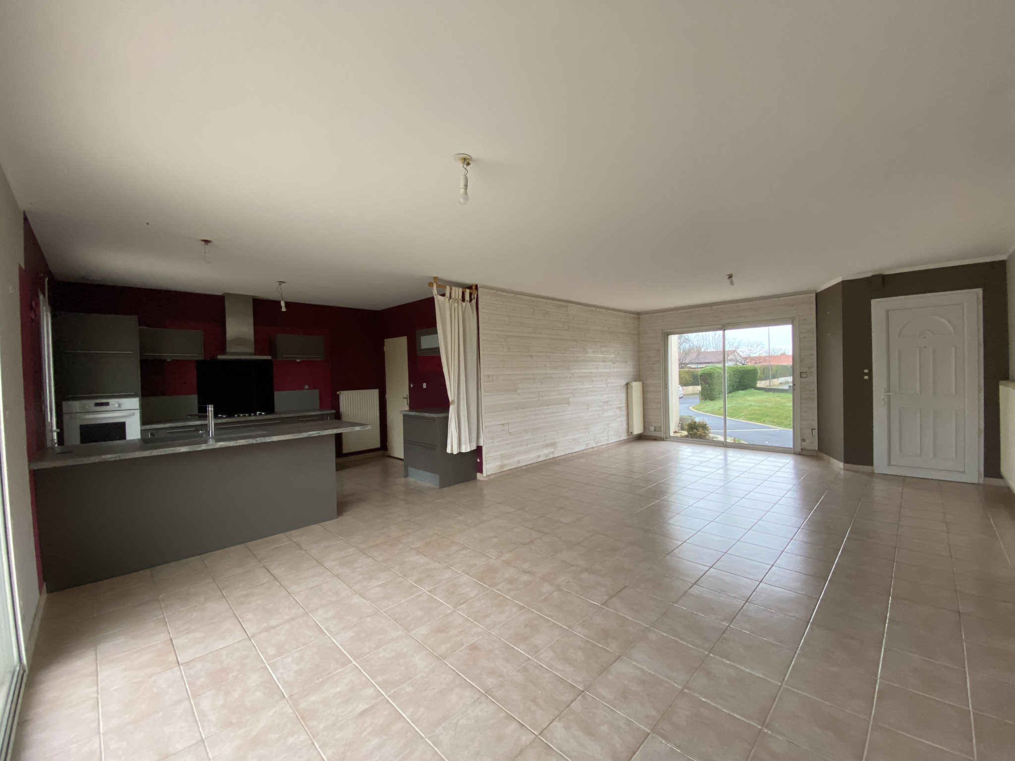 QUARTIER CALME DANS LE BOURG, Maison de plain pied offrant pièce de vie avec cuisine à l'américaine et équipée, espace nuit de trois chambres, salle de bains, wc séparés.