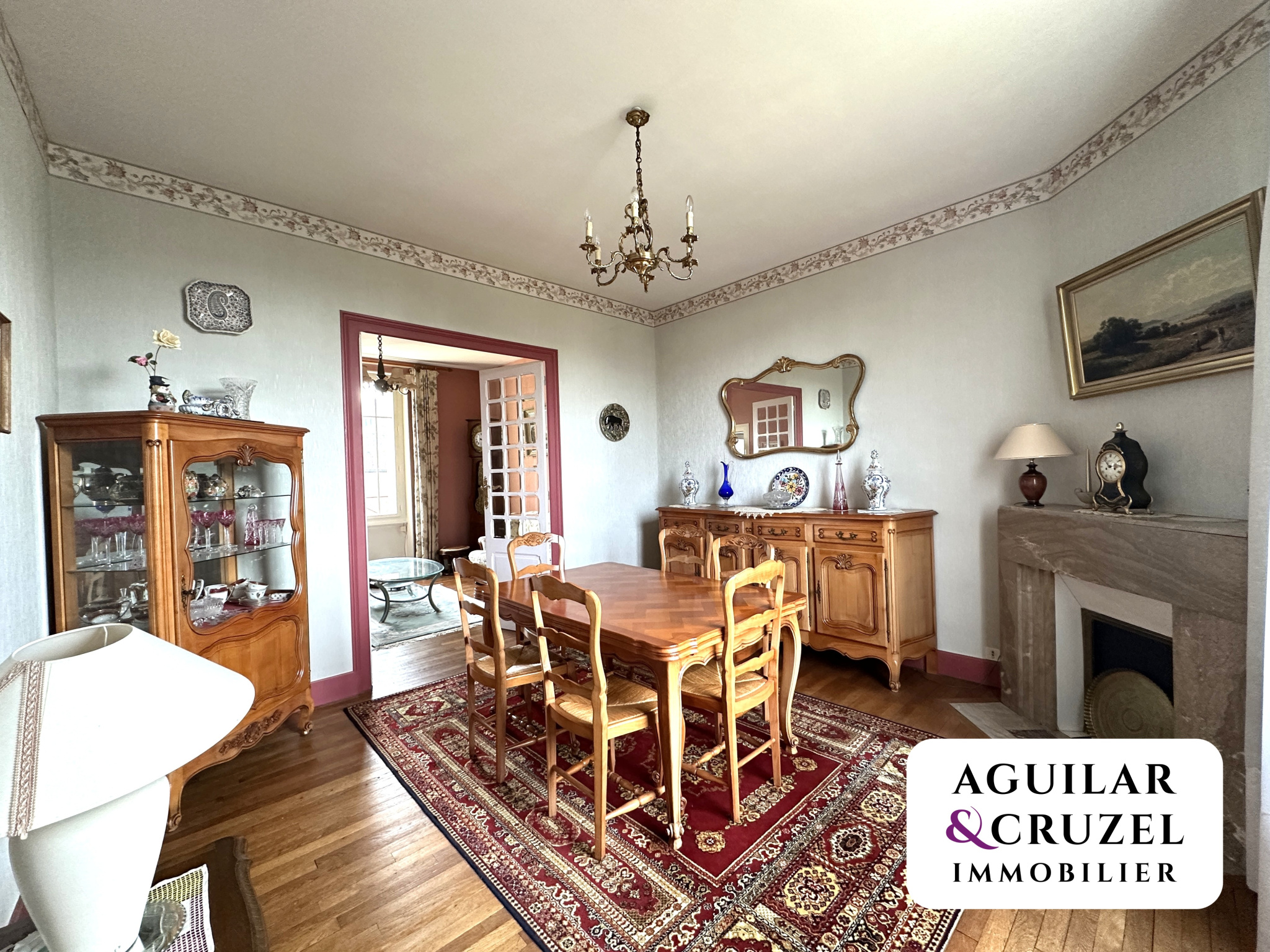 La maison dispose également d'un sous-sol total comprenant un garage avec porte motorisée, un atelier et une buanderie, le tout ouvrant sur un jardin clos et arboré.