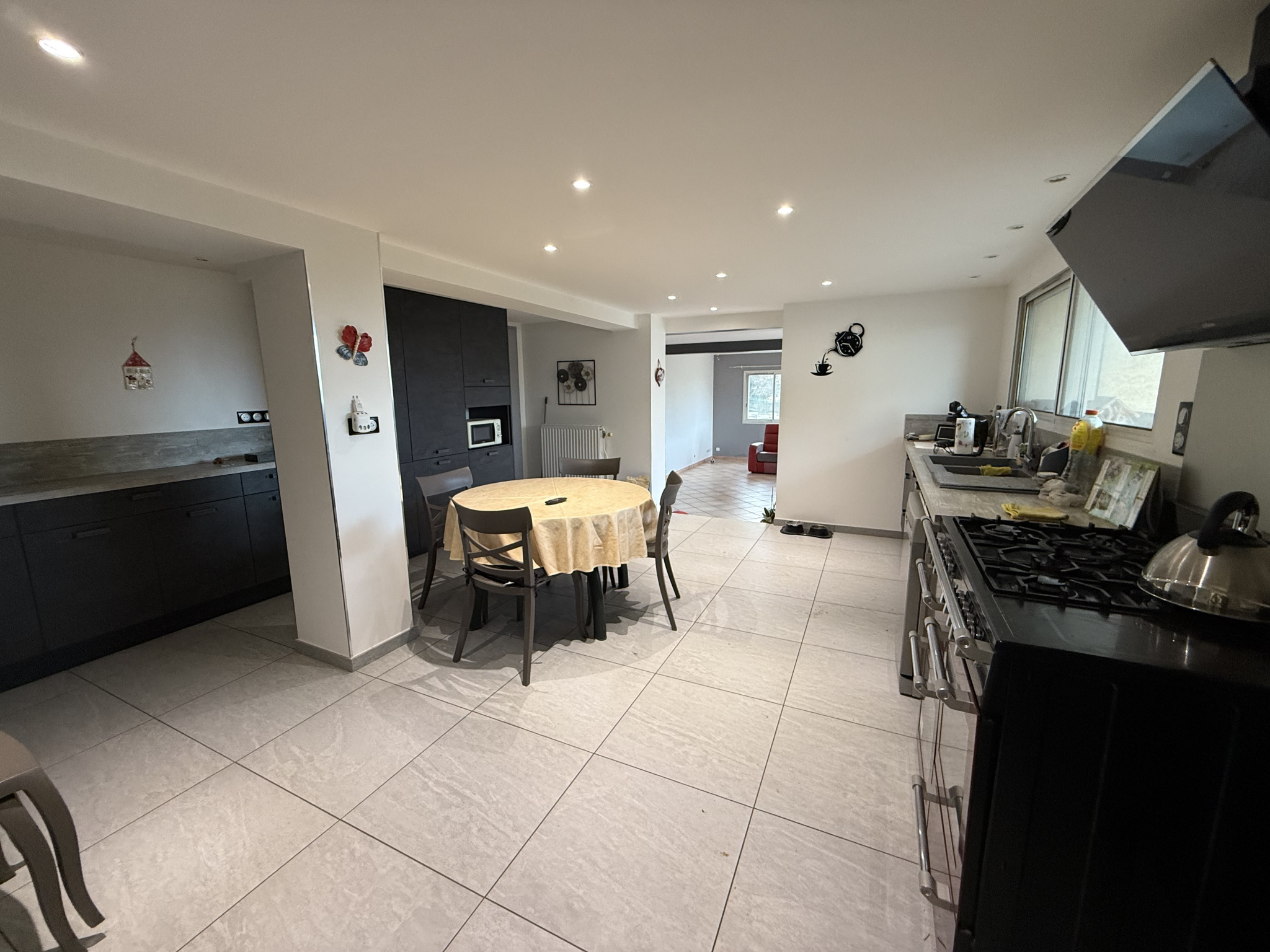 Composition et prestations :La maison offre un vaste espace salon salle à manger d'environ 56 m2, une cuisine équipée indépendante, 4 chambres, 2 salles de bains, un bureau, buanderie, ainsi que 2 toilettes.