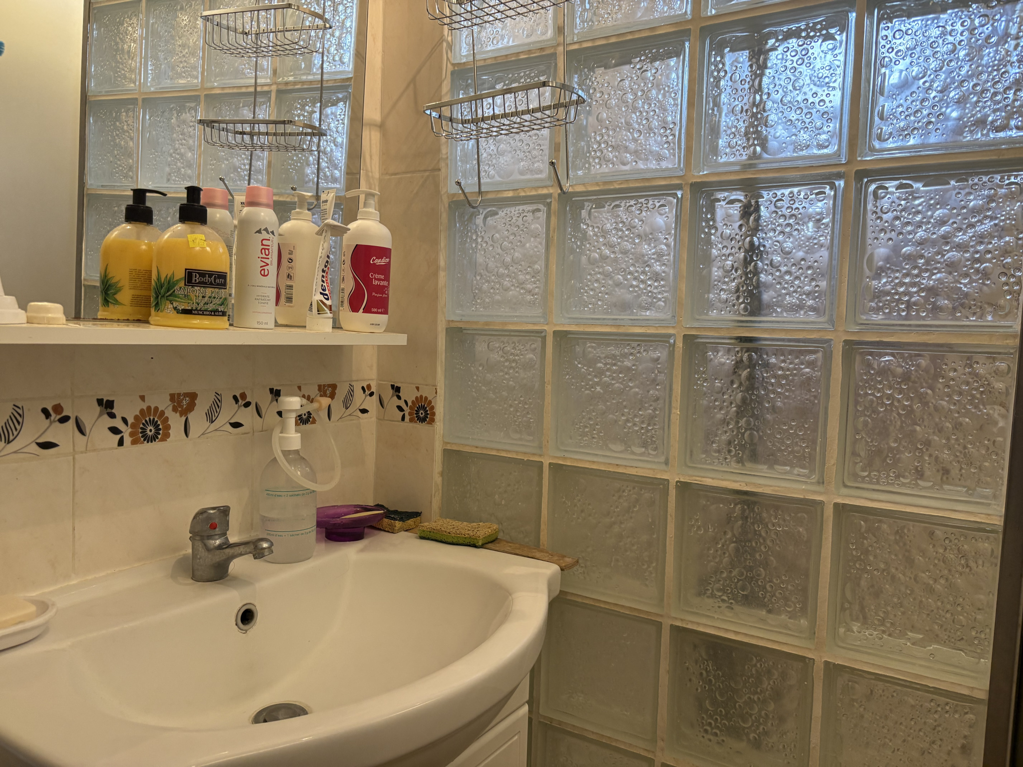 Rdc: Pièce de vie avec poele à granulés, salon, salle d'eau avec wc.