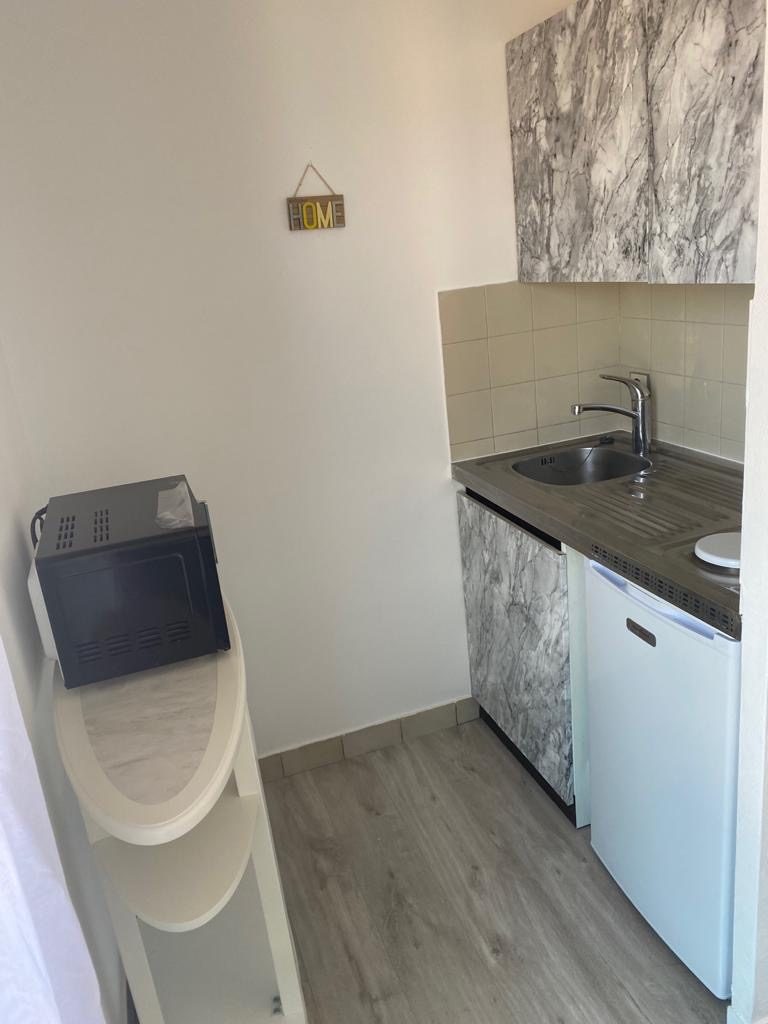 Cet appartement se compose d'une entrée avec placard, d'une pièce principale avec belle vue dégagée, coin cuisine équipé (frigo et four micro-ondes, 2 plaques électriques, vaisselle), salle de bain.