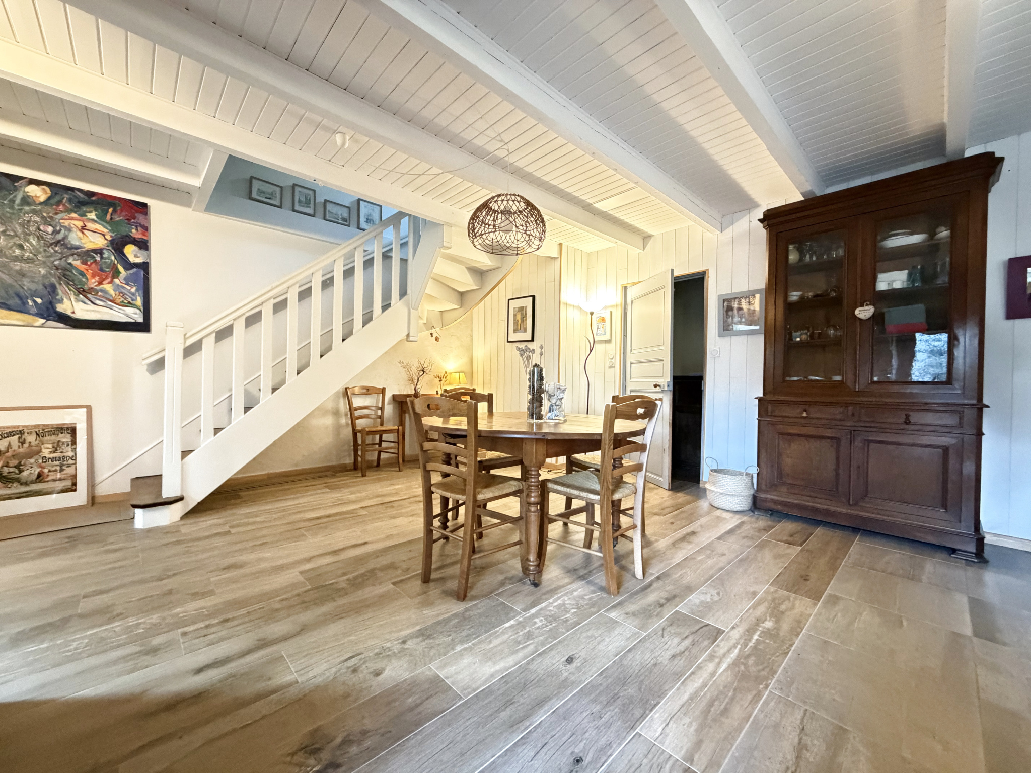 Dès l'entrée, vous serez séduit par une vaste pièce de vie baignée de lumière, où le charme de l'ancien se marie harmonieusement au confort moderne. Elle se compose d'une cuisine aménagée et équipée ouverte, d'une salle d'eau et de WC. À l'étage, une superbe suite parentale propose un espace nuit confortable, complété par une pièce supplémentaire pouvant faire office de quatrième chambre indépendante, tout en restant parfaitement intégrée à l'ensemble.