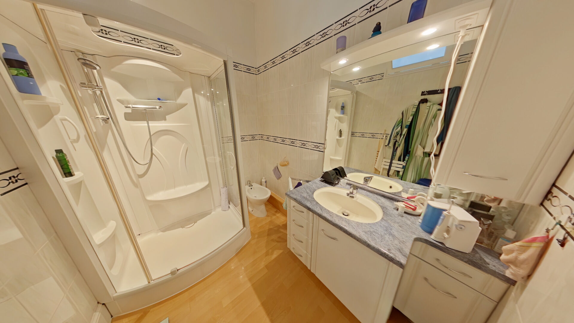 A l'étage : 4 chambres, 3 points d'eau et un toilette.