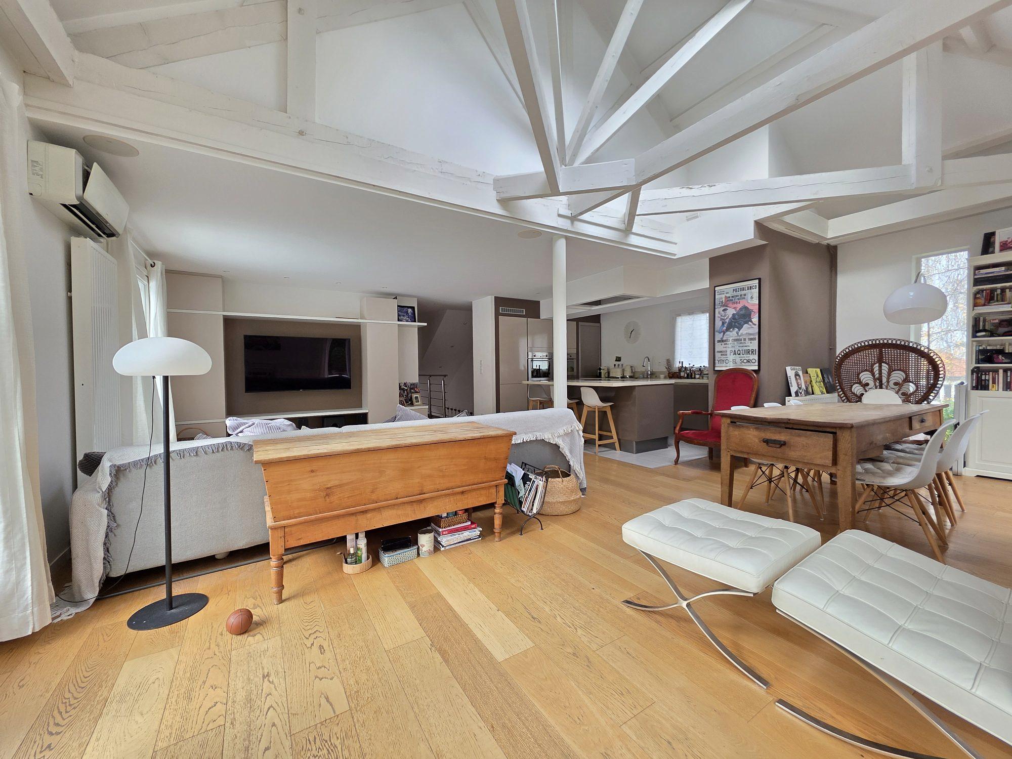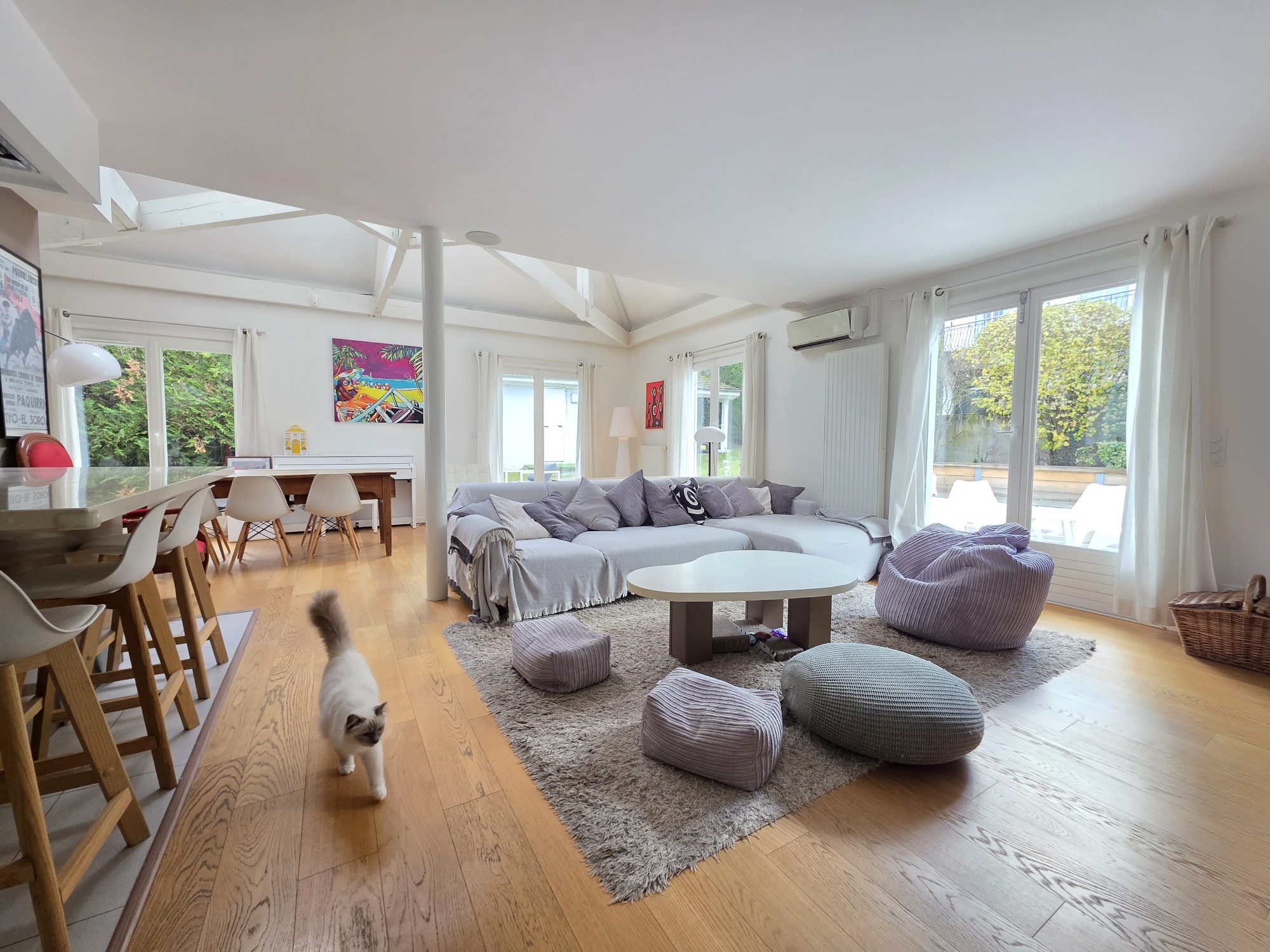 Imaginez-vous dans ce séjour spacieux de 50 m² baigné de lumière, ouvrant sur une grande terrasse avec piscine et un jardin avec terrasse couverte, parfaits pour des moments de détente en plein air. La cuisine américaine aménagée et entièrement équipée est un véritable atout pour les amateurs de cuisine. La vue sur le jardin et la terrasse ajoute une touche de sérénité à votre quotidien.