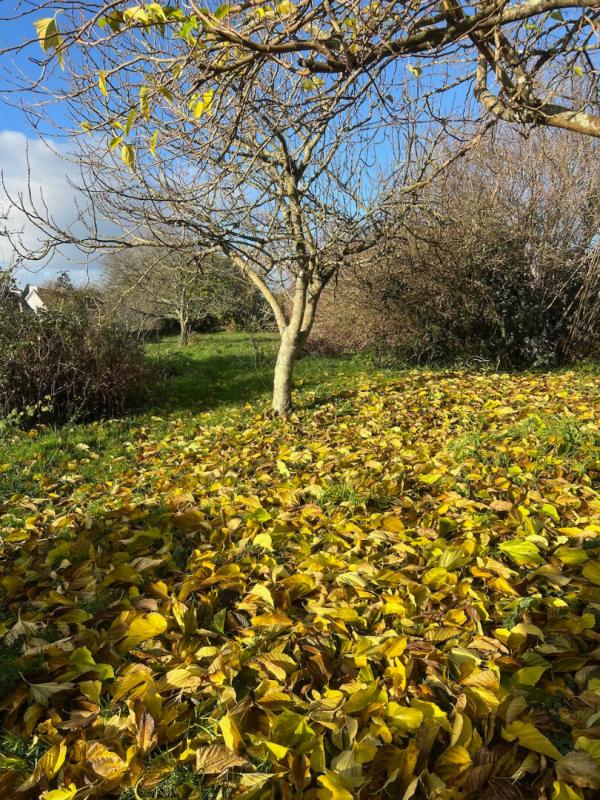 Vue dégagée sur Quimperlé depuis la maison et depuis le jardin. Double garage sous terrasse et dépendances sur terrain plat 1400m2 constructible, en partie potager et arbres fruitiers.