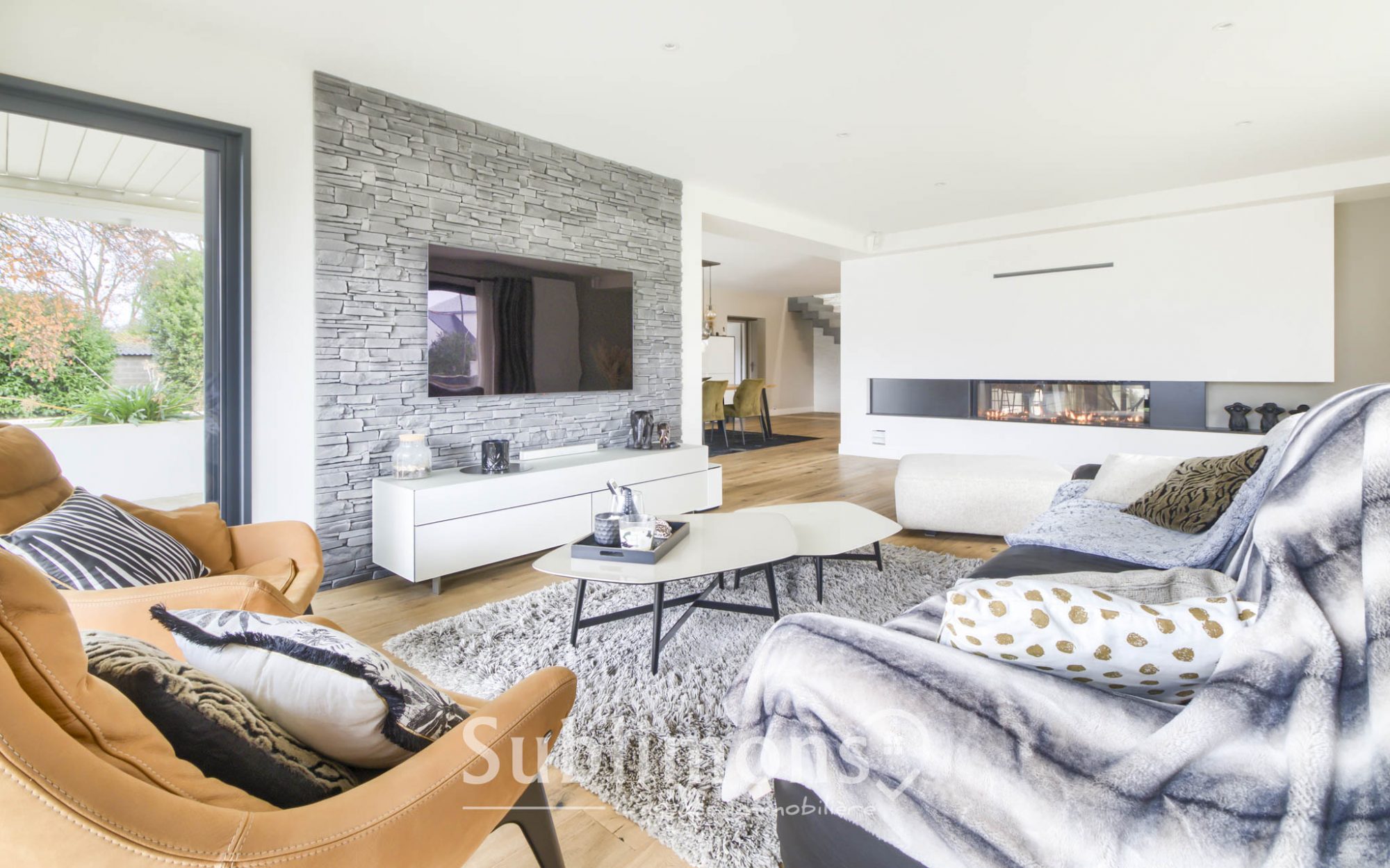 Elle offre un espace de vie exceptionnel de près de 100m², très lumineux et design à l'image de cette grande cheminée à gaz se fondant parfaitement dans le décor. Vous trouverez également un bel espace dînatoire/cuisine de plus de 20m² entièrement équipé de matériaux neufs et de grande qualité. Une buanderie et une cave à vin climatisée viennent compléter le tout. A l'écart se trouve la suite parentale avec dressing, salle d'eau et wc indépendant.