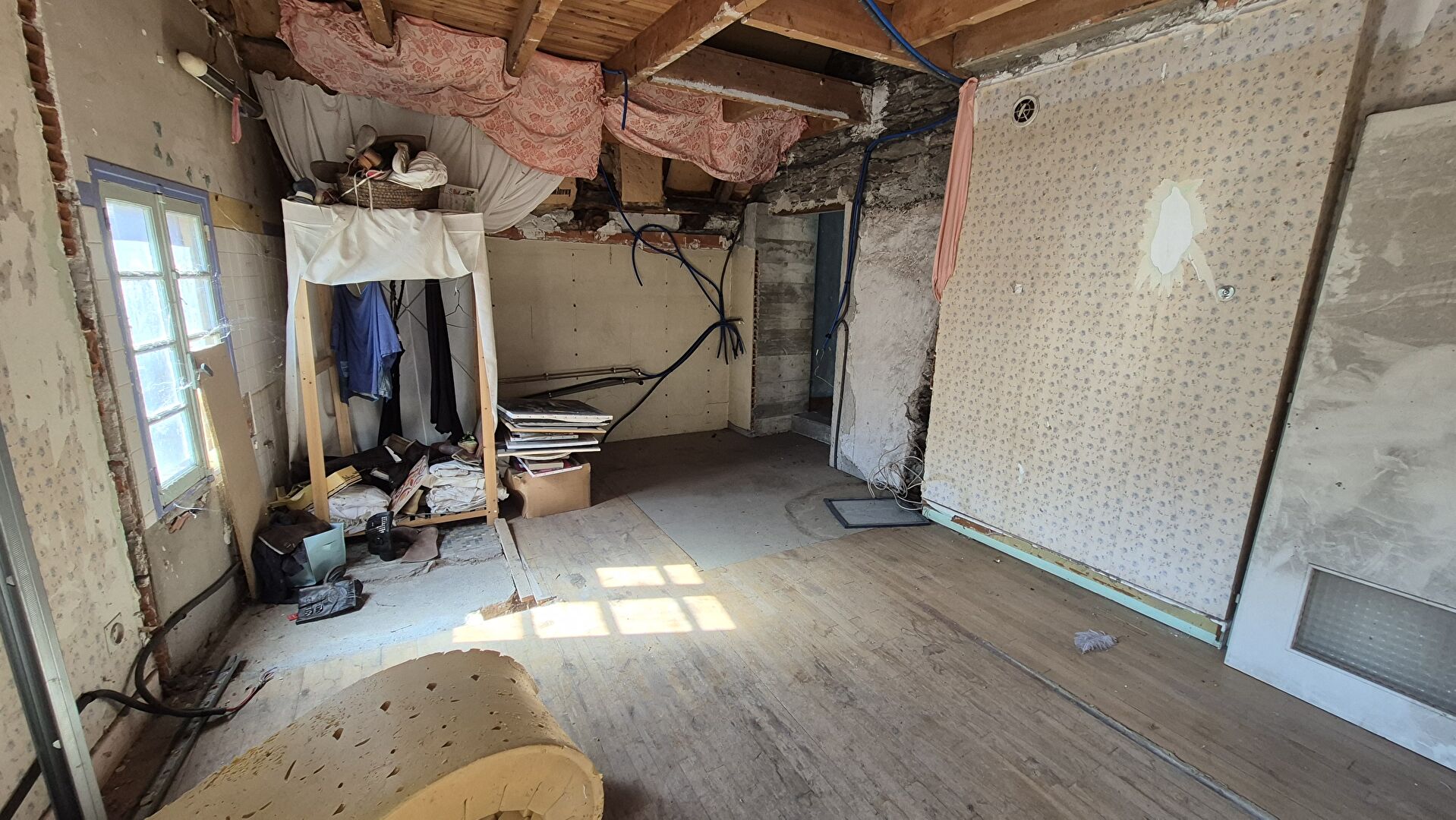 Cuisine, salon/salle à manger au premier, deux chambres et salle d'eau au second, combles à aménager.