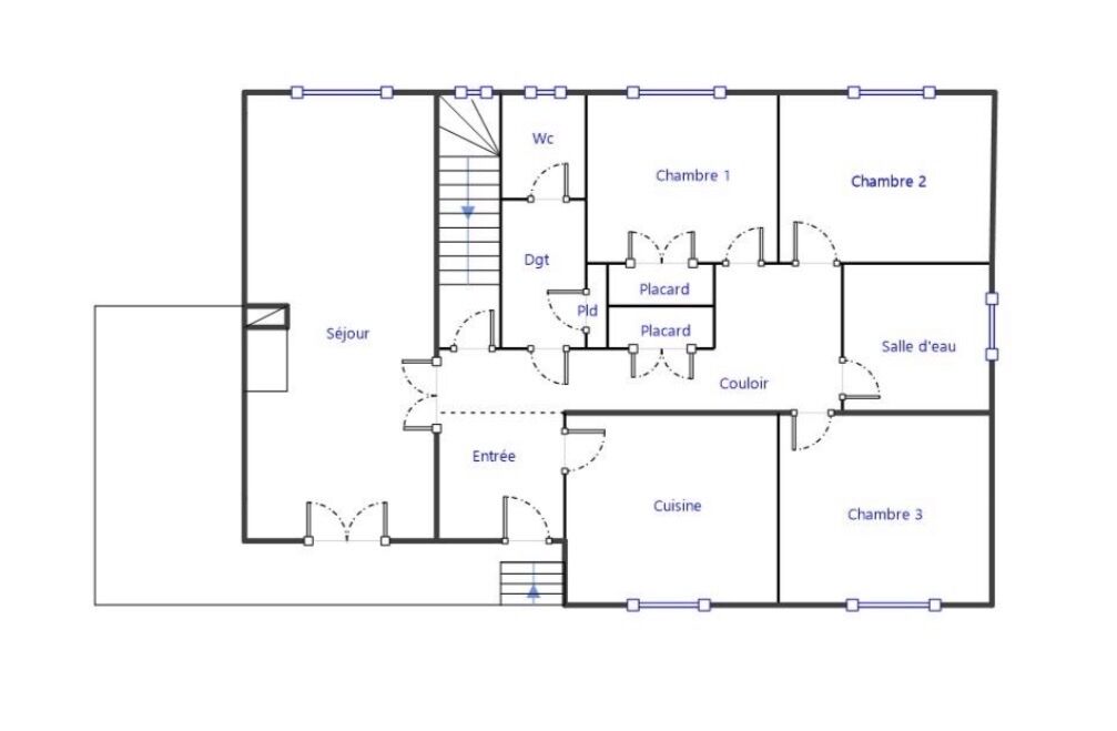 Maison non mitoyenne sur sous-sol comprenant une entrée desservant une cuisine indépendante aménagée et équipée, ainsi qu'une belle pièce de vie lumineuse avec cheminée insert.