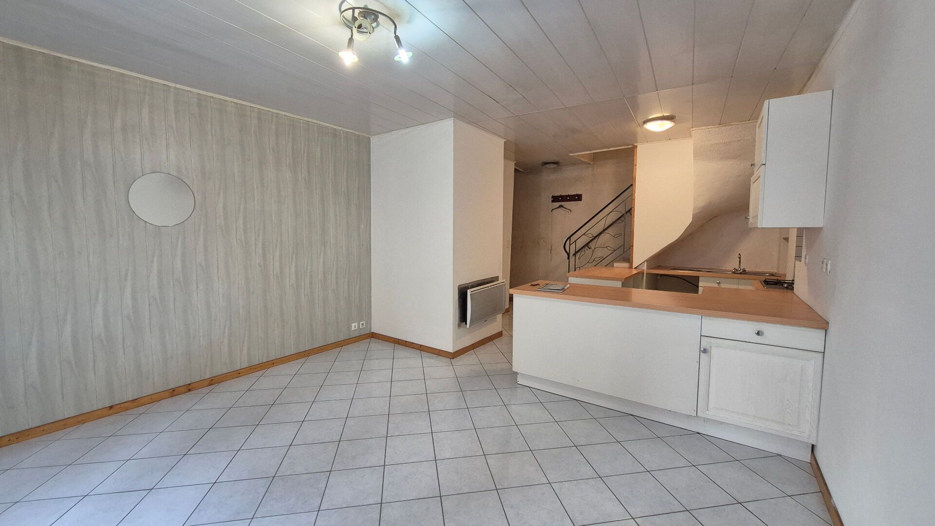 Une cuisine ouverte, séjour/salle à manger, wc au premier étage.