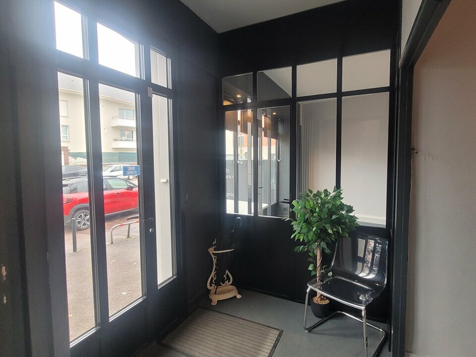 - au rez-de-chaussée, une entrée donnant sur un escalier, 3 bureaux (cloisons semi-vitrées type industriel), un sanitaire + un accès vers une cour intérieure.