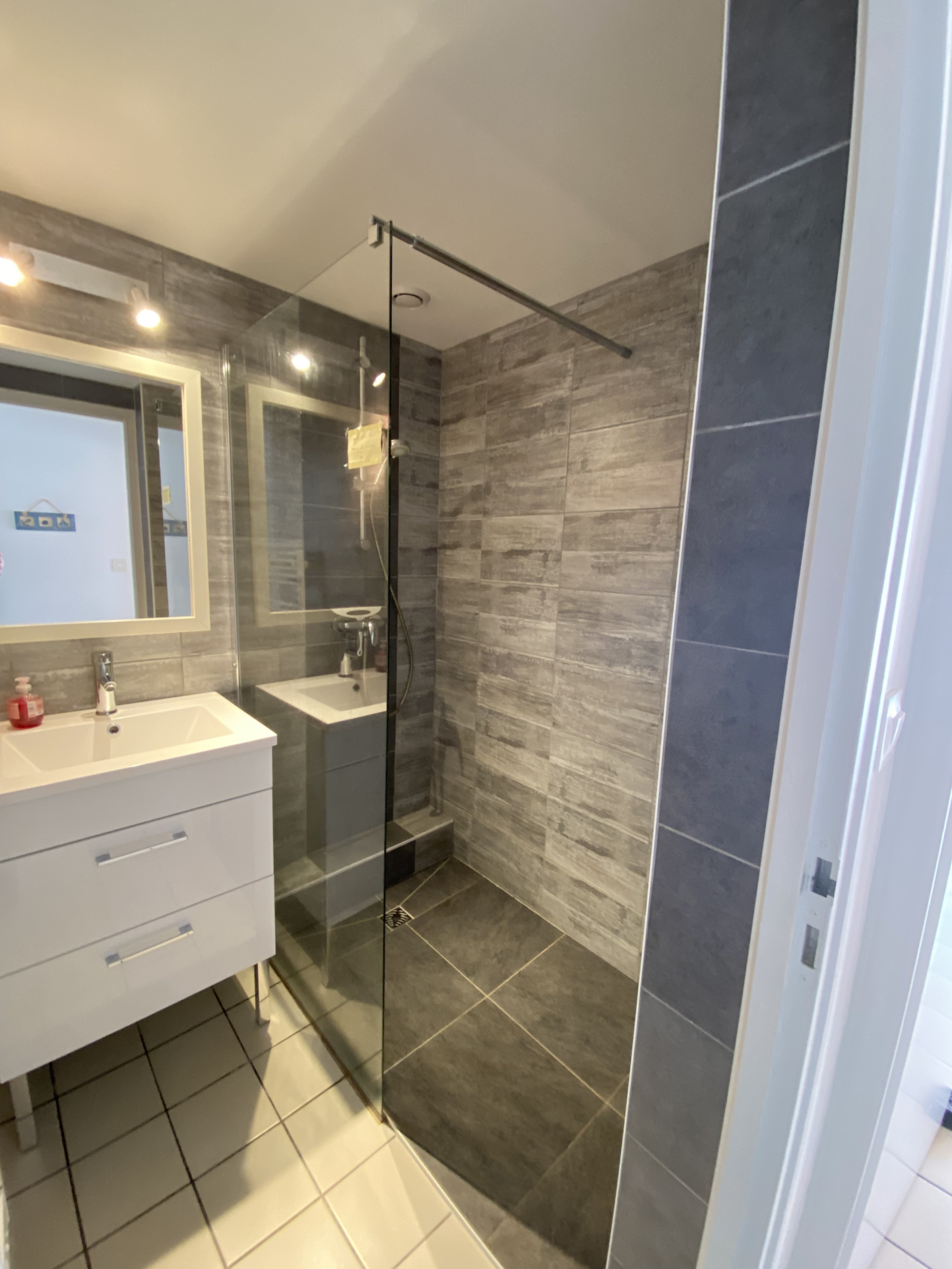 Dégagement desservant une salle d'eau entièrement rénovée, WC séparé et 2 chambres .