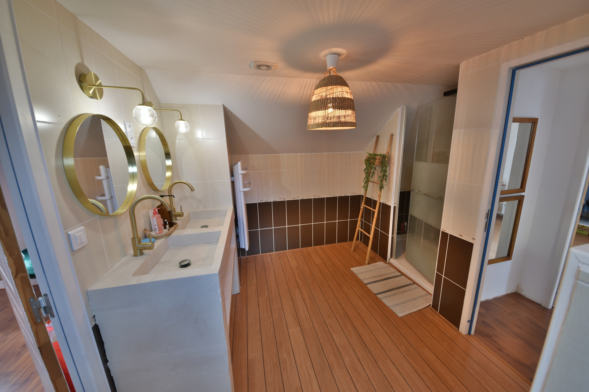 A l'étage : suite parentalle avec chambre-dressing-salle de bains.