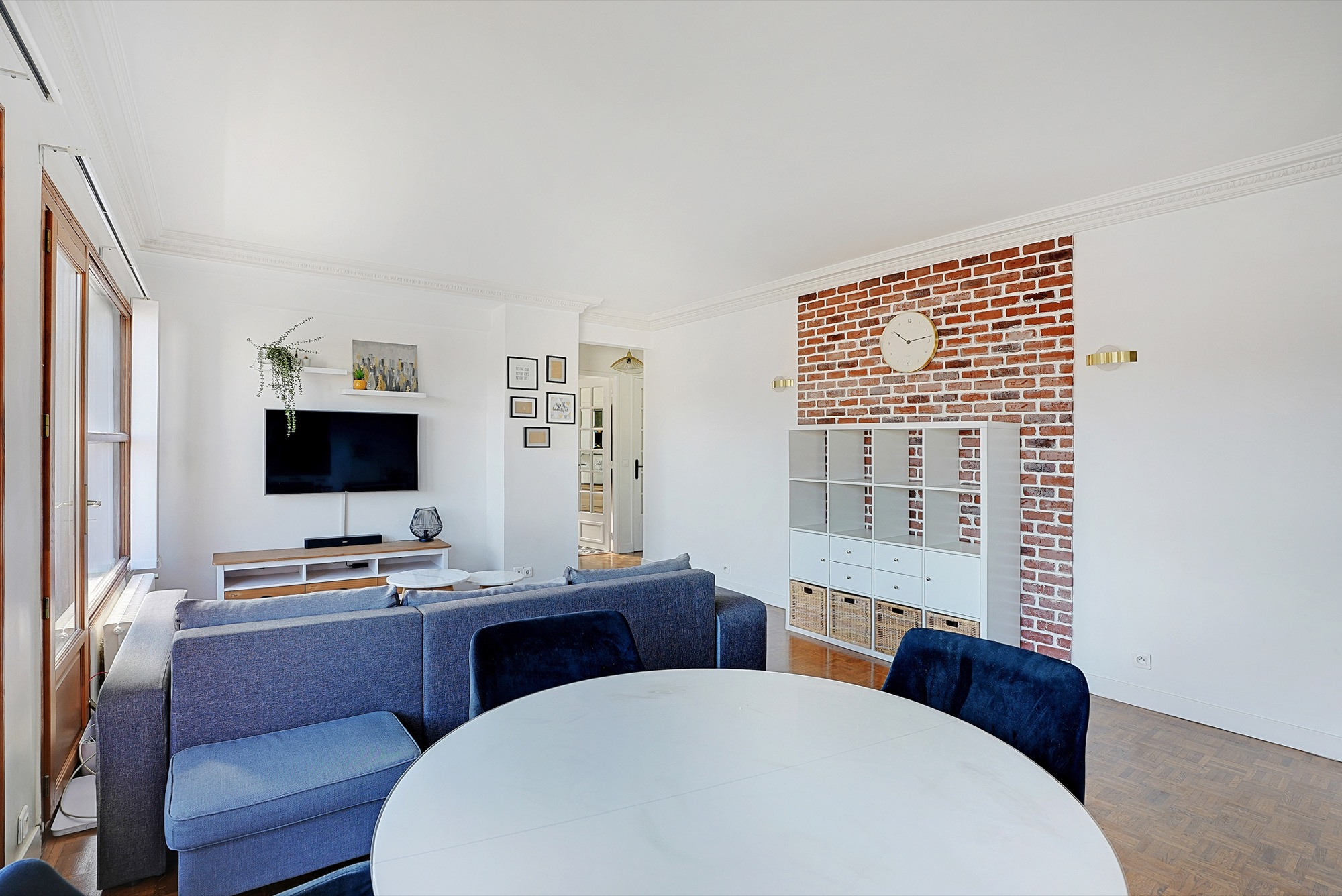 Le séjour donne accès à un balcon filant, deux chambres, une salle de bains et des WC séparés.
