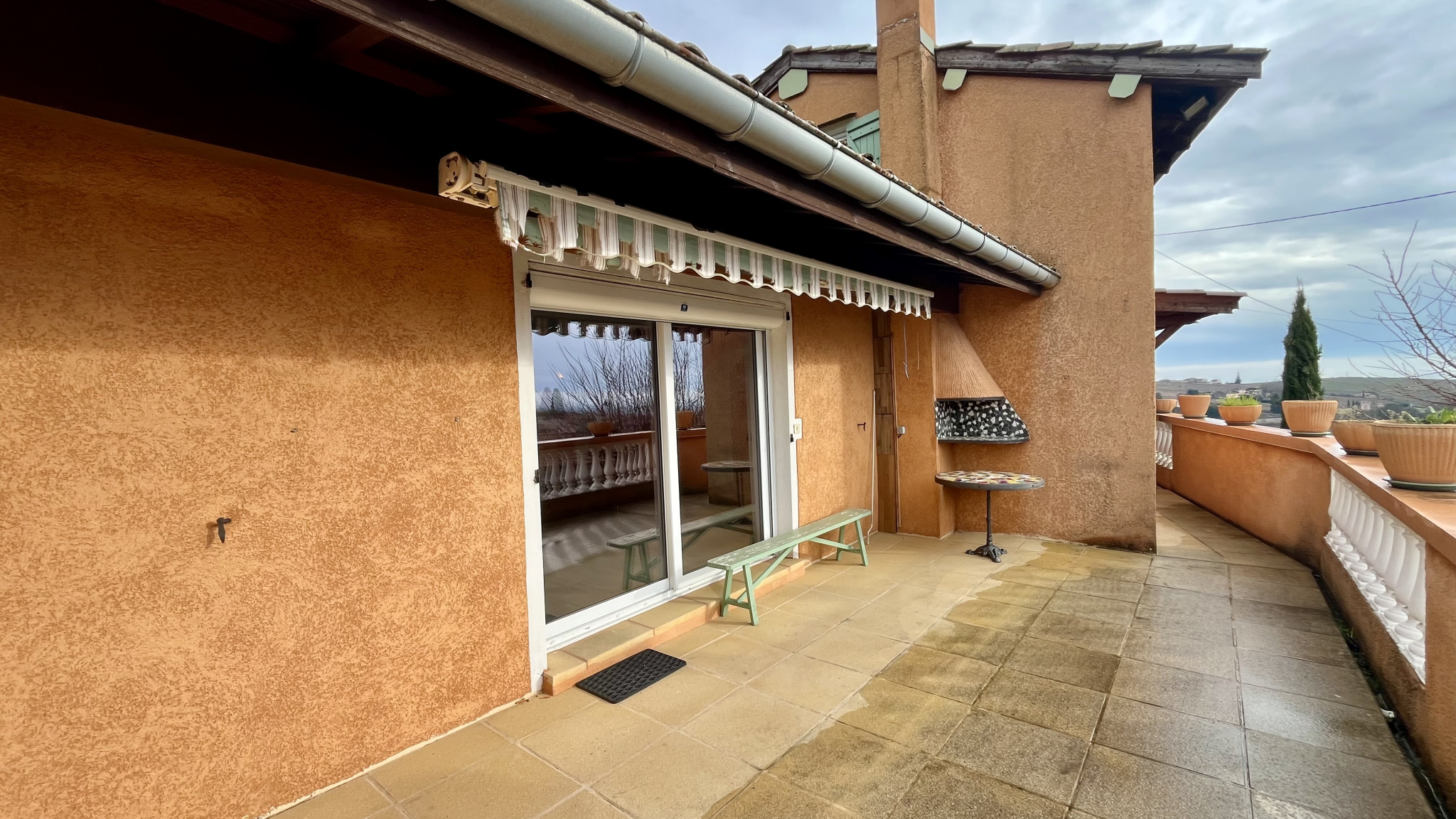 Vous profiterez aux beaux jours en plus de la terrasse au Sud, une seconde terrasse et BBC, vous profiterez également d'une belle parcelle de jardin clos de murs et de grillage, avec une cabane en dure.