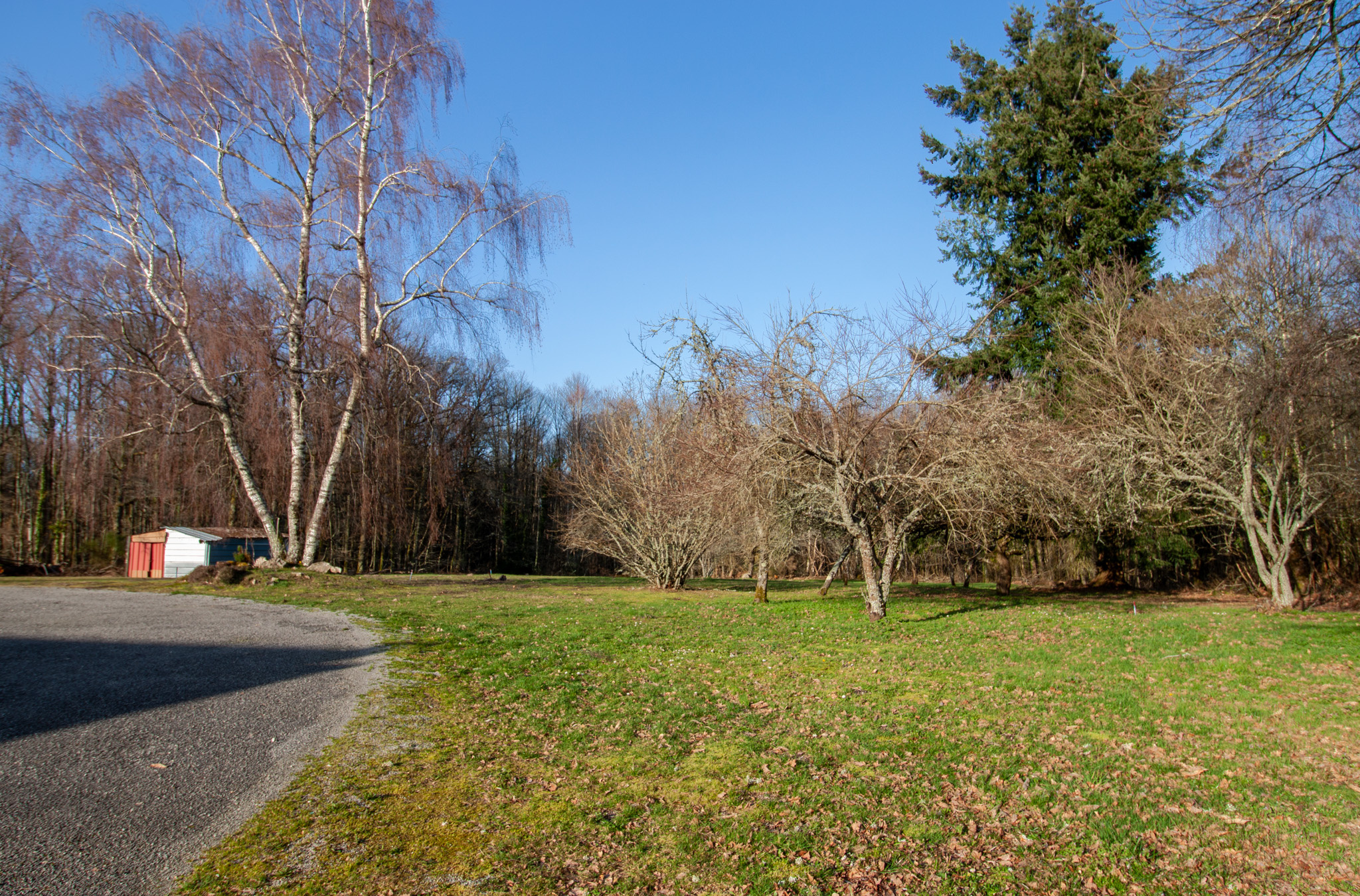 À l'arrière, le terrain plat et arboré offre un cadre intime et naturel, un véritable atout devenu rare dans le secteur.