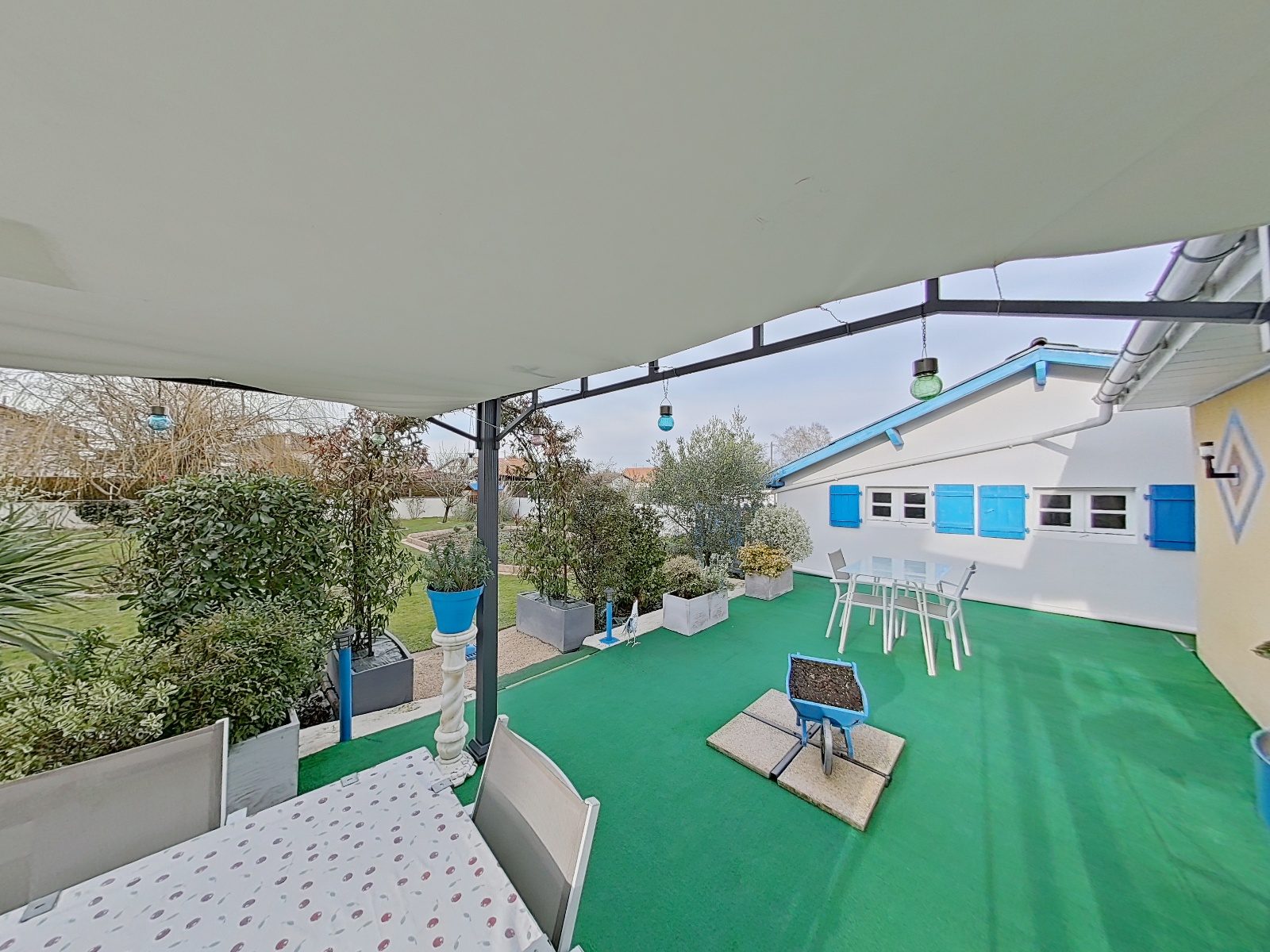 À l'extérieur, le terrain plat, clos et fleuri de 500 m² offre un cadre paisible et agréable. Une grande terrasse permet de profiter pleinement des beaux jours, idéale pour les repas en extérieur et les moments de détente. Des arrivées d'eau extérieures facilitent l'arrosage du jardin, complétées par un récupérateur d'eau de pluie de 1 000 litres.