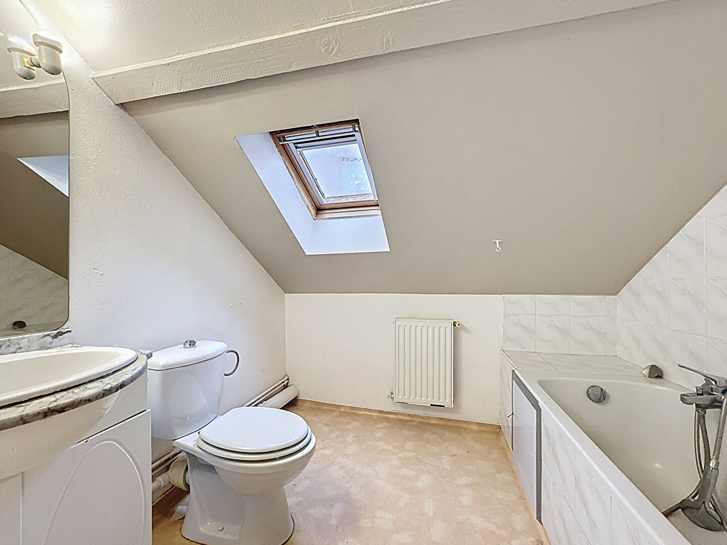 A l'étage on y retrouve une salle de bain, wc et 1 chambre mansardée.