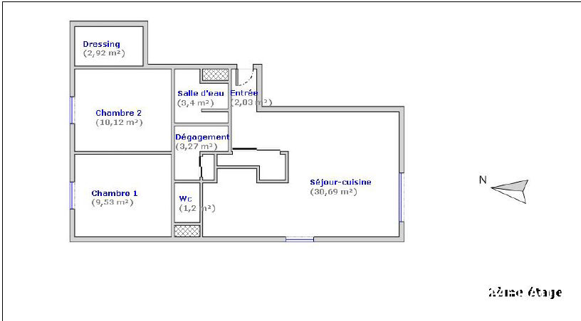 Il se compose de deux chambres spacieuses dont une avec rangements intégrés, salle d'eau, wc, d'une cuisine aménagée et équipée, ainsi que d'un grand séjour lumineux ouvrant sur un balcon exposé plein sud, idéal pour profiter de la lumière naturelle tout au long de la journée.