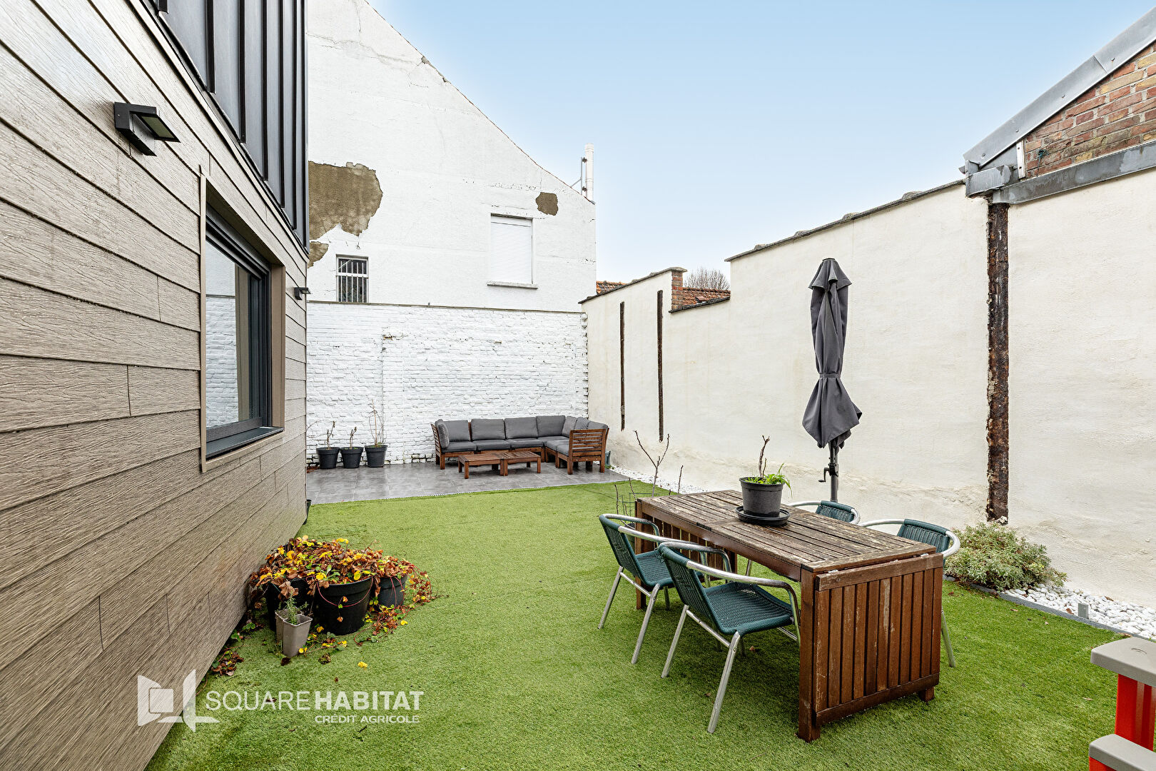 À l'extérieur, profitez d'un jardin de ville bien exposé plein sud et d'une terrasse neuve de 20 m² pour vos moments de détente.
