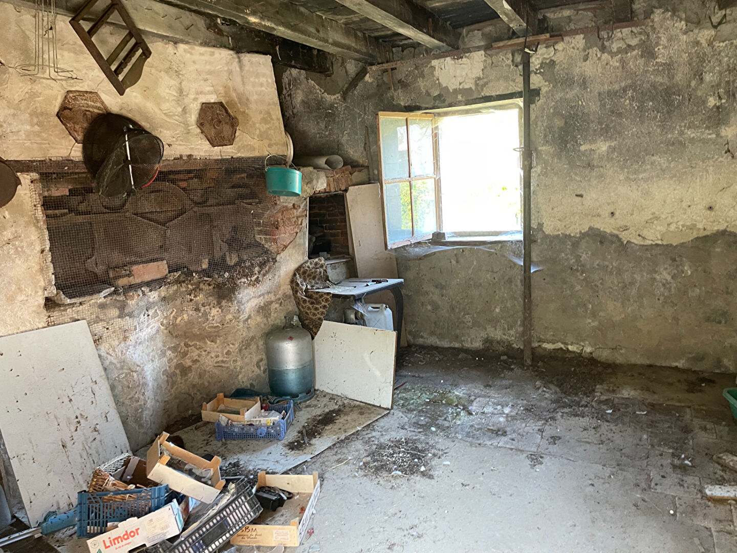 Une maison d'habitation A RENOVER de 99m² située sur la commune de OYRE comprenant au rez-de-chaussée : entrée, un séjour de 23m², une cuisine de 17.3m² et des toilettes indépendant.