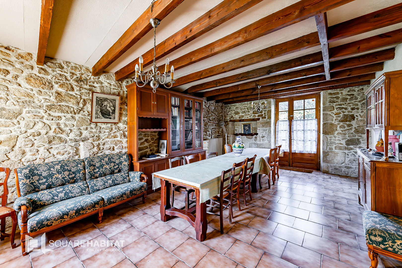 composée d'une entrée, un bureau, une cuisine, un vaste salle à manger , un salon avec cheminée en pierre, une salle d'eau, 5 chambres, une chaufferie. Un logement annexe et grange à rénover entièrement le tout sur un terrain de 1200m² environ