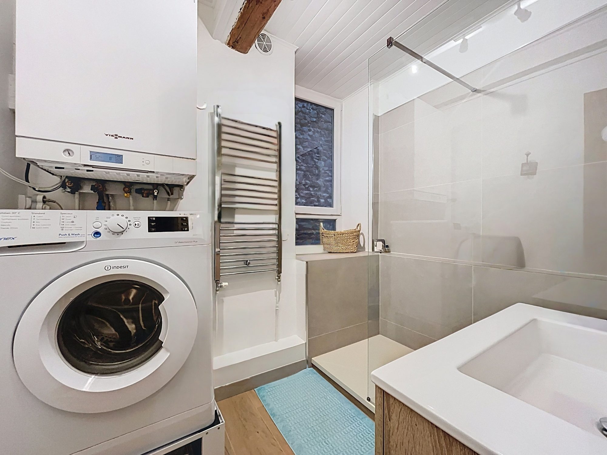 Le bien est en parfait état et dispose de prestations de qualité : double vitrage, chaudière individuelle au gaz, cuisine équipée et parquet chaleureux dans tout l'appartement.