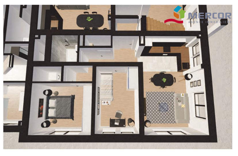 La cuisine, bien que nue, offre un coin cuisine pratique et fonctionnel, prêt à être personnalisé selon vos goûts. Les fenêtres et murs isolés garantissent une excellente isolation thermique et phonique, tandis que les ouvertures en PVC/aluminium avec triple vitrage assurent une sécurité optimale.