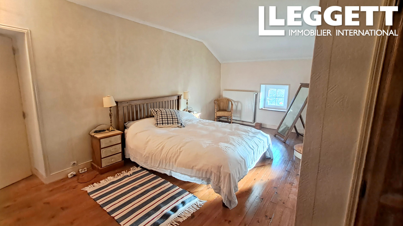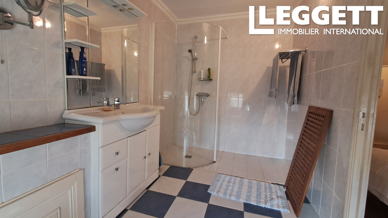 À l'étage, vous trouverez trois chambres, une salle de bains familiale et une chambre principale avec salle d'eau attenante. Le jardin orienté au sud est avec pelouse et agrémenté d'arbres, et piscine