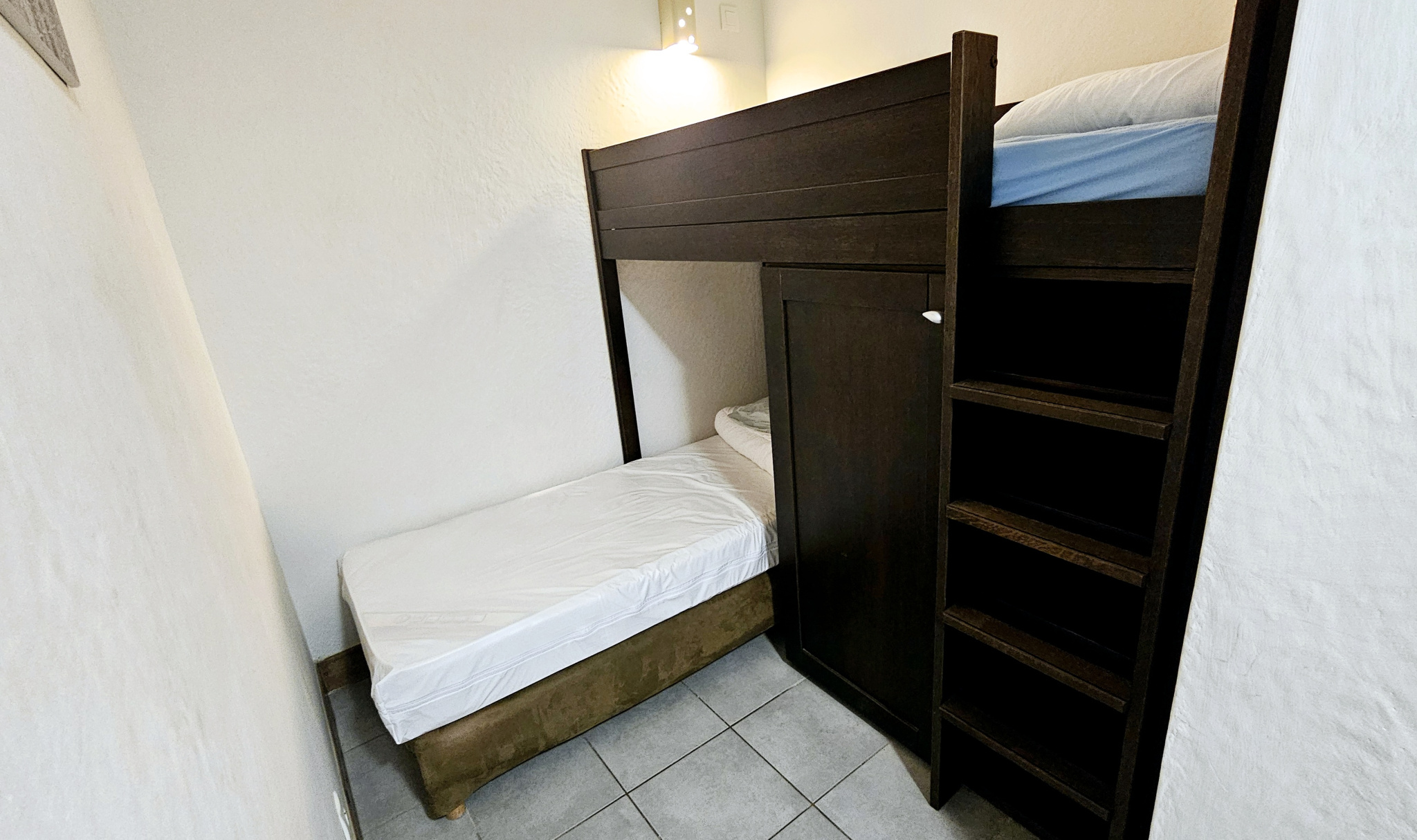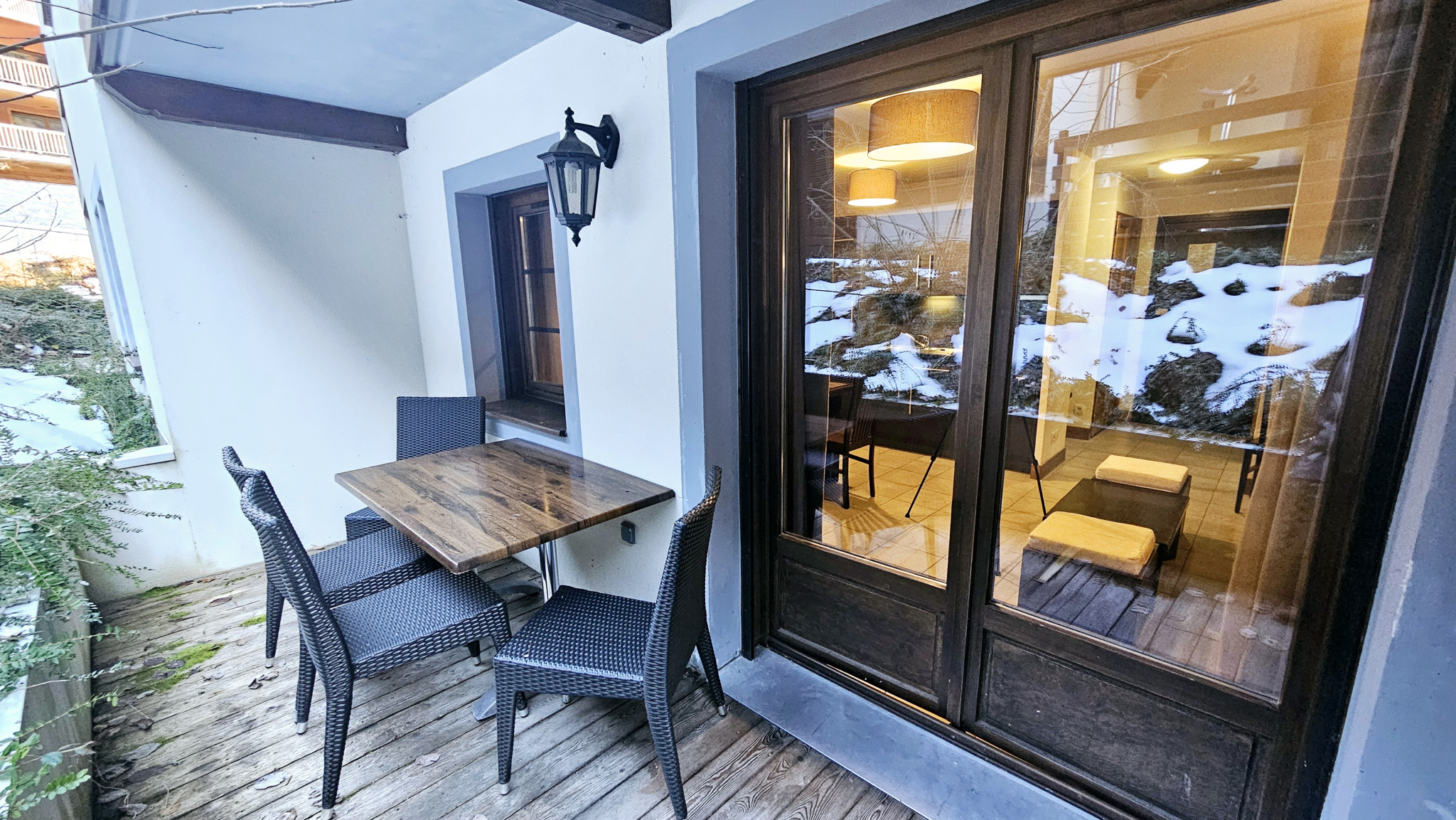 Vendu entièrement meublé, ce bien comprend également un casier à skis et un garage fermé.