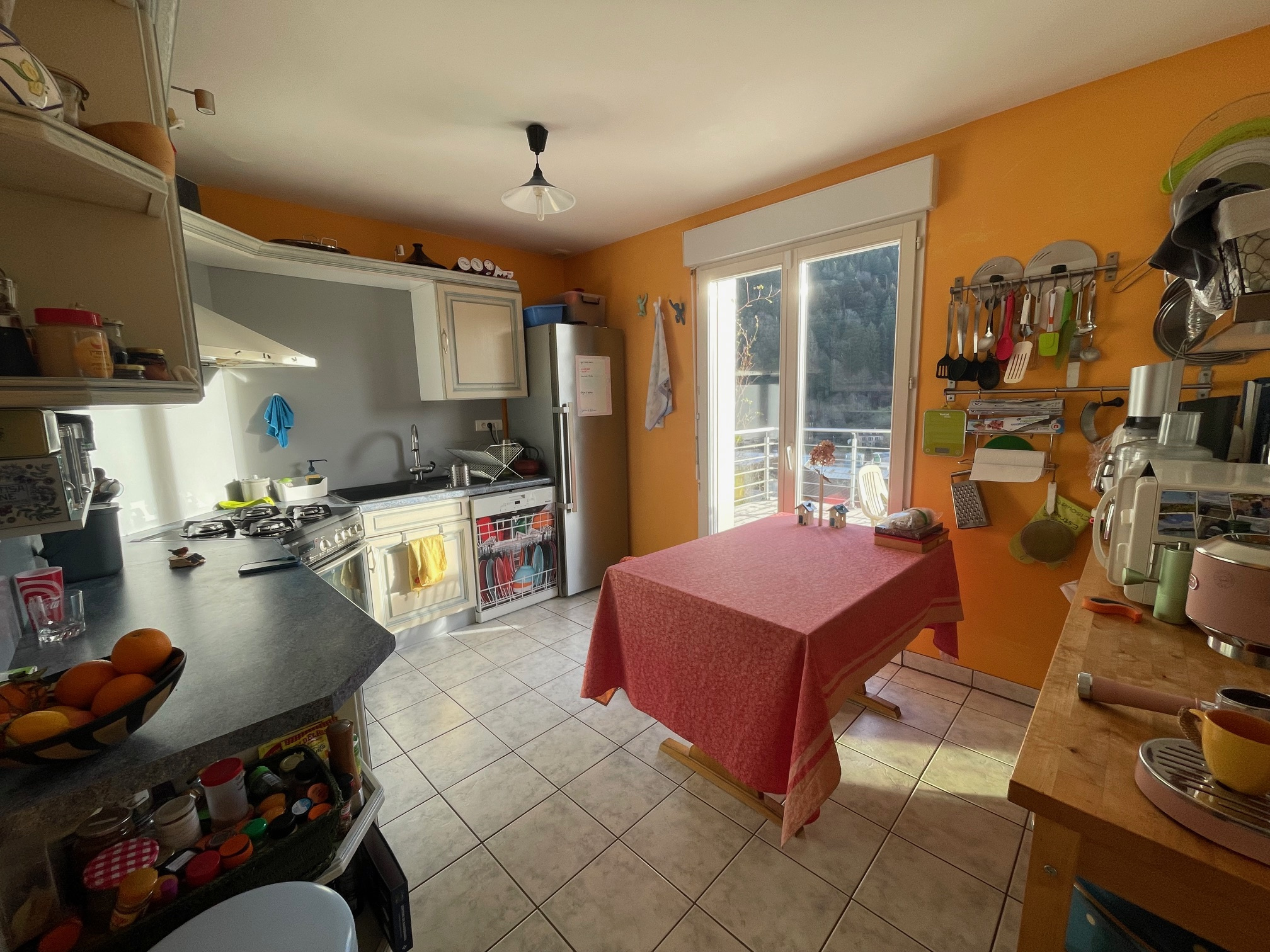 PAVILLON de type F5 comprenant : entrée, cuisine aménagée équipée, salon-séjour avec poêle à bois et accès à une grande terrasse, wc, salle de bain, buanderie, garage 1 véhicule.