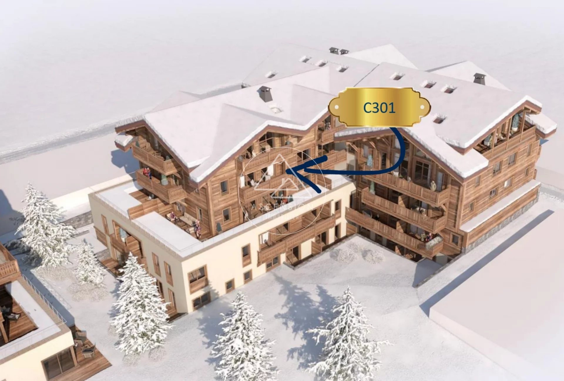 L’appartement C301 est situé au deuxième étage et sera composé de quatre chambres, d’un coin montagne, d’une pièce pour cinéma ou gym, d’un grand séjour/salon de 49.15 m2, d’une cuisine ouverte de 16.27 m2, de quatre salles de douche pour une superficie totale de 150.43 m2. L’appartement dispose de quatre balcons permettant une triple exposition sur les montagnes environnantes.