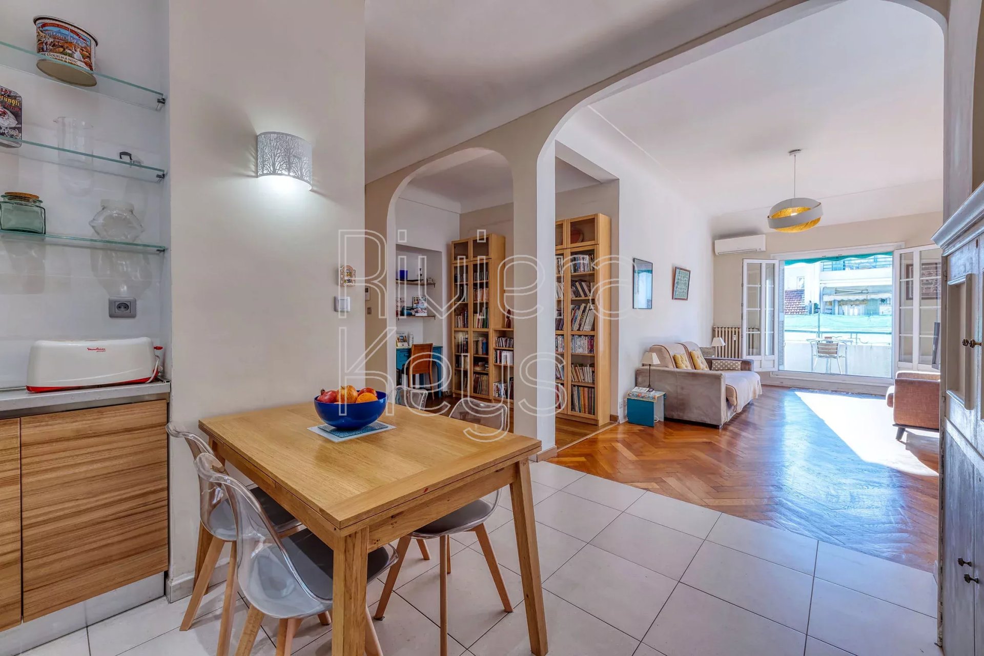 Cet appartement spacieux se compose d’un vaste séjour baigné de lumière, intégrant un coin bibliothèque ou espace de travail, avec accès direct à une terrasse ensoleillée, de 2 chambres, d’une cuisine familiale ouverte entièrement équipée idéale pour préparer des repas conviviaux.