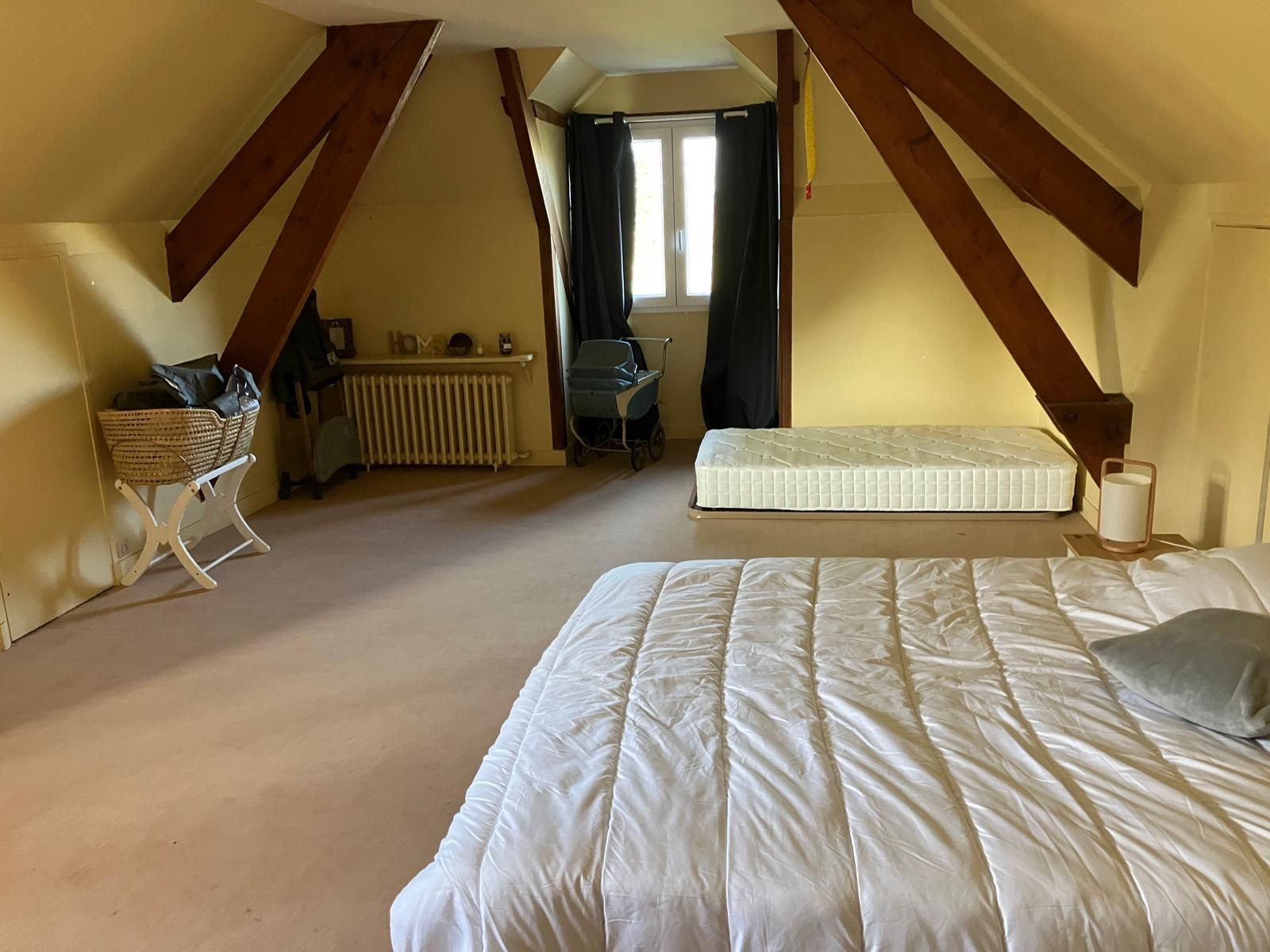 Etage : Palier, 1 chambre puis une grande pièce à usage de salon d'étage, couloir, 2 chambres, salle de bains, wc.