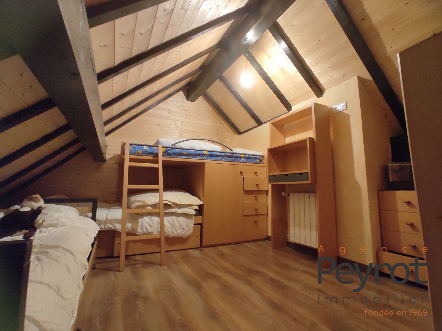 APPARTEMENT en triplex au dernier étage , comprenant au premier niveau, séjour avec bacon, cuisine ouverte équipée, WC , au 1 er niveau relié par un escalier intérieur, 2 chambres , salle de bains avec WC, et au 2 -ème niveau une chambre sous toit. Rénové entièrement. Dans une copropriété proche des commerce et de la navette gratuite. Casier à ski, parking copropriété.